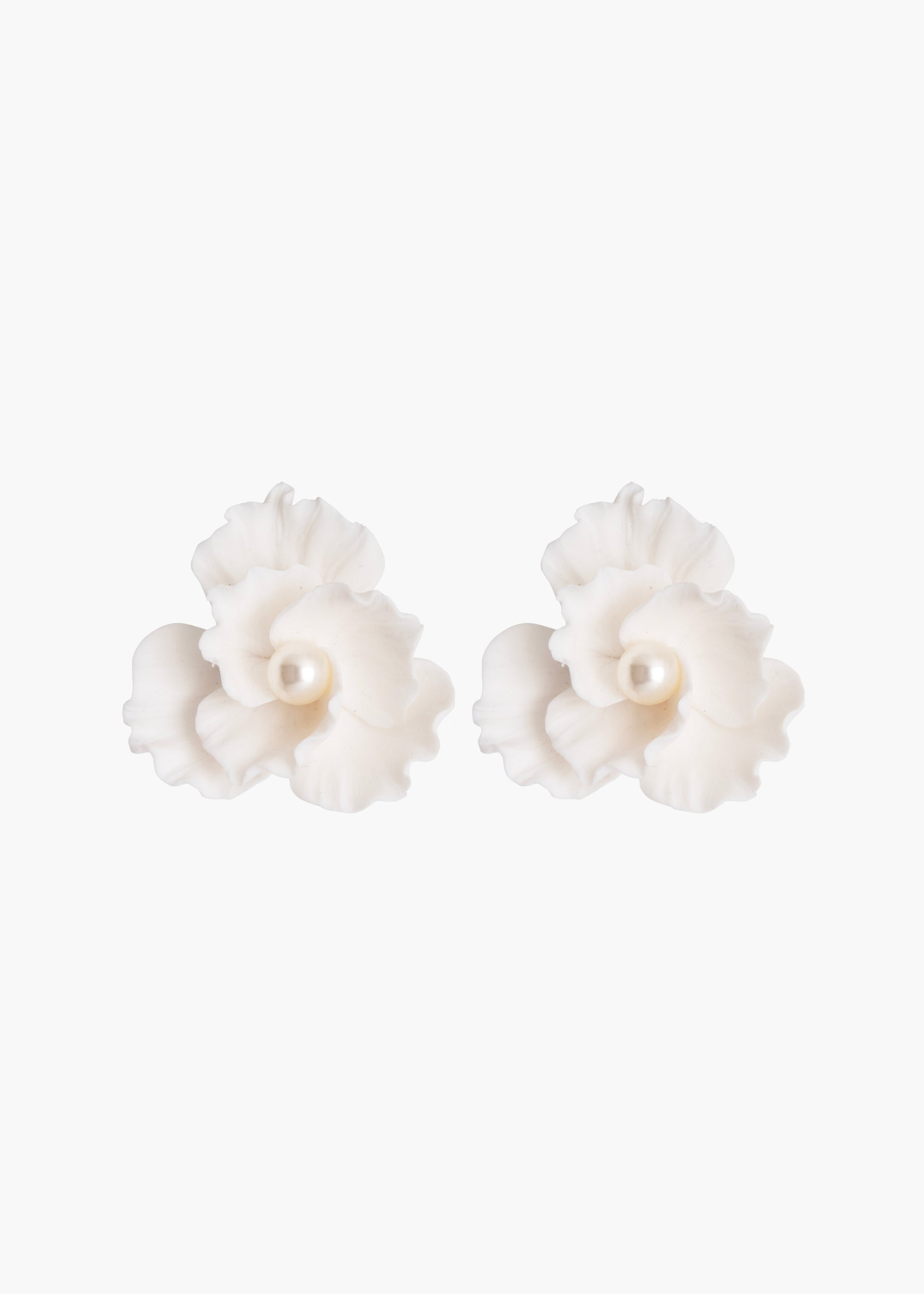 Straightforward yet breathtaking, the Karissa Earrings are the dreamiest finishing touch. In a process that has been years in the making, polymer clay is hand-pressed to create each layered petal, for an incredibly realistic bloom. Finished with pearl details, these earrings pair perfectly with other pearl hair accessories and jewelry; the matching Karissa Bobby Pin Set completes the look. Dimensions: 7/8" in length, 1" in width. Material The Karissa Earrings are made by hand in New York from Ukrainian hand pressed polymer flowers with Czech crystal pearl centers. They have a surgical-steel post, are nickel-free, and safe for sensitive skin. We recommend storing earrings in their dust bag while not in use, and avoiding contact with water, perfume, hairspray, and other chemicals.
