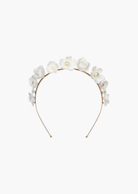 With handcrafted flowers fastened into a crown, the Karissa Headband is a memorable statement. Made in New York from hand-pressed polymer clay, each element is modeled after a specific flower, including roses and pansies, and placed on a thin, flexible wire headband. The Karissa Bobby Pin Set and Cameryn Bobby Pin Set can be added to amplify the look, and the Karissa Earrings will tie it all together. Dimensions: 1"in length, 1" in width. Material The Karissa Headband is made in New York of 18K gold plated brass and Ukrainian hand pressed polymer flowers on a thin and flexible headband, which is designed to disappear in the hair and ensure hours of comfort. We recommend treating this headband as you would a piece of jewelry, and storing in the dust bag when not in use. Avoid contact with water, perfume, and other chemicals, including hairspray, which should be used before placement in the hair.