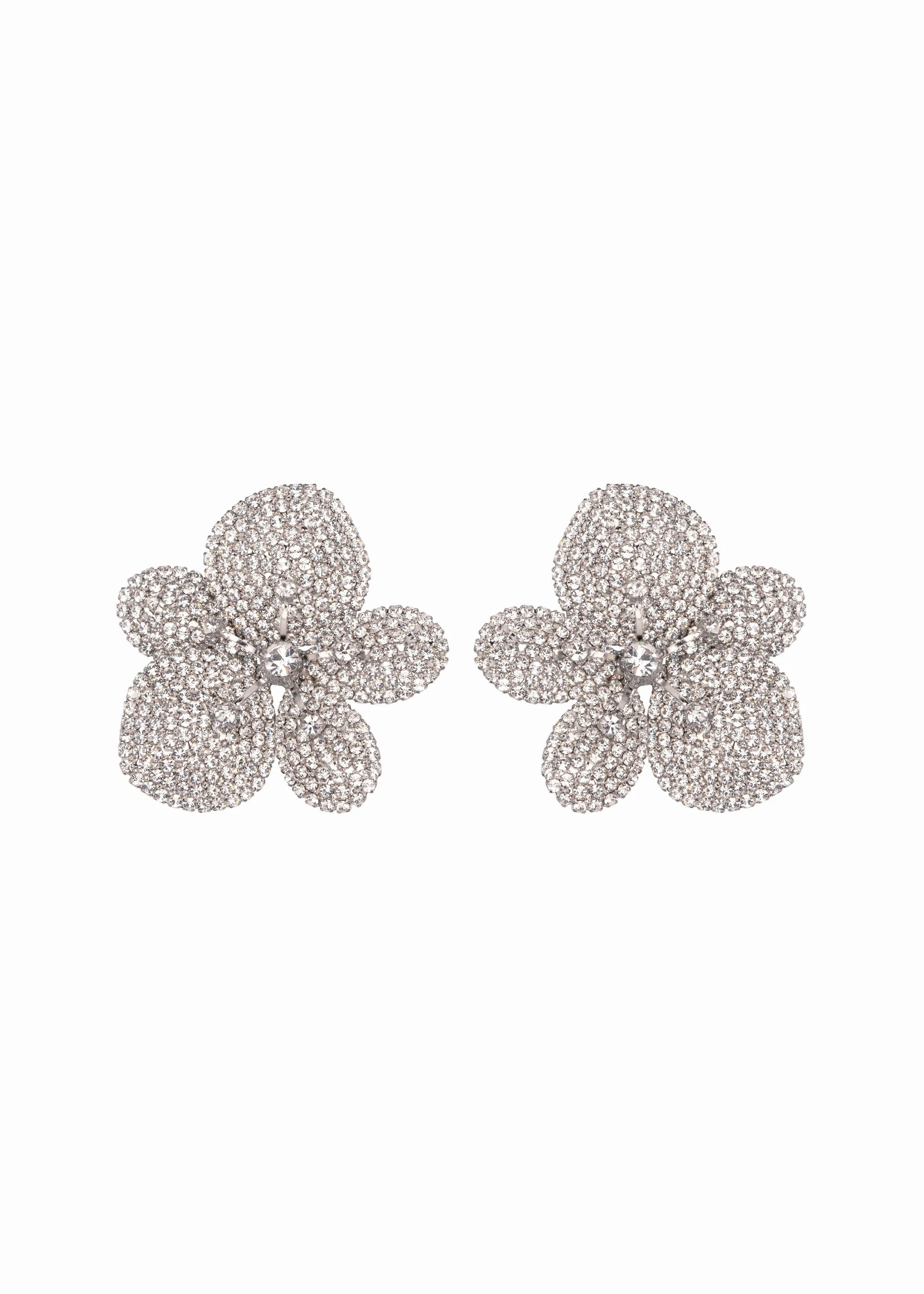 The Kiarra Earrings are lifelike blooms, dramatically blanketed in pave crystal to form a stunning statement. This effect can only be achieve by the considerable level of craftsmanship on display in these earrings, each one made by hand in New York. Pair them with the Kiara Brooch for a fully coordinated look. Dimensions: 2in x 1 7/8in Material The Orchid Earrings are made by hand in New York from Rhodium or 18K gold plated brass and Austrian crystals. They have a surgical-steel post, are nickel-free, and safe for sensitive skin. We recommend storing earrings in their dust bag while not in use, and avoiding contact with water, perfume, hairspray, and other chemicals.