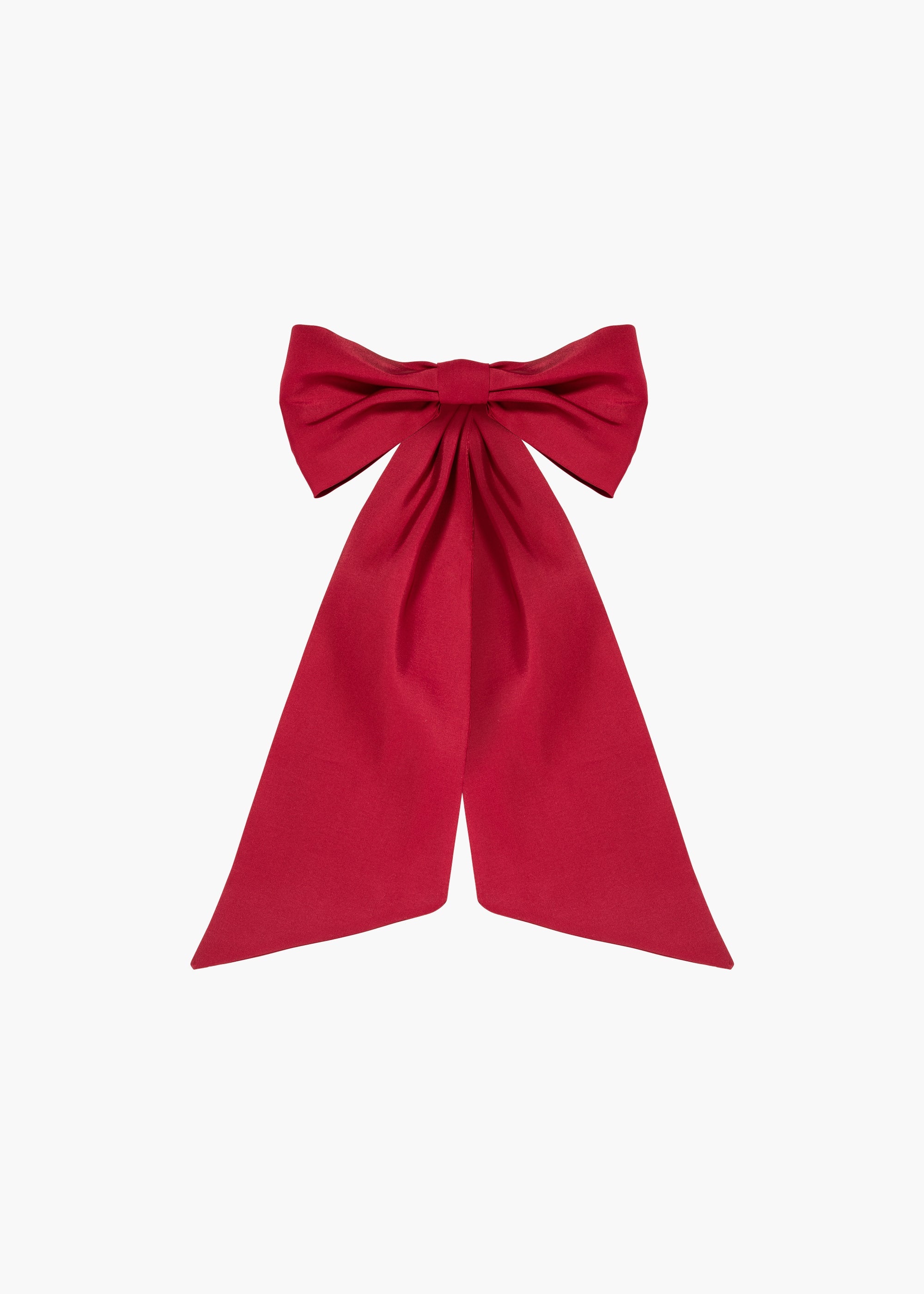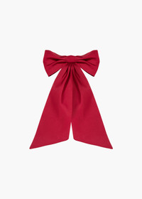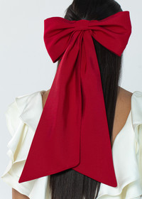 An finishing touch of mythic proportions, the Leander Bow Barrette in Faille dwarfs all other bows with its magnificent scale. Expertly draped and sewn by hand in our New York studio, the structure of the silk faille fabric lends itself excellently to the oversized bow shape. An automatic French barrette closure makes for easy and secure placement in any number of hairstyles. Dimensions: 1.5 inch width, 18 inch length Material The Leander Bow Barrette is made by hand in New York of silk faille and finished with a steel French barrette closure. We recommend treating this bow as you would a piece of jewelry, and storing in the dust bag when not in use. Avoid contact with water, perfume, and other chemicals, including hairspray, which should be used before placement in the hair.