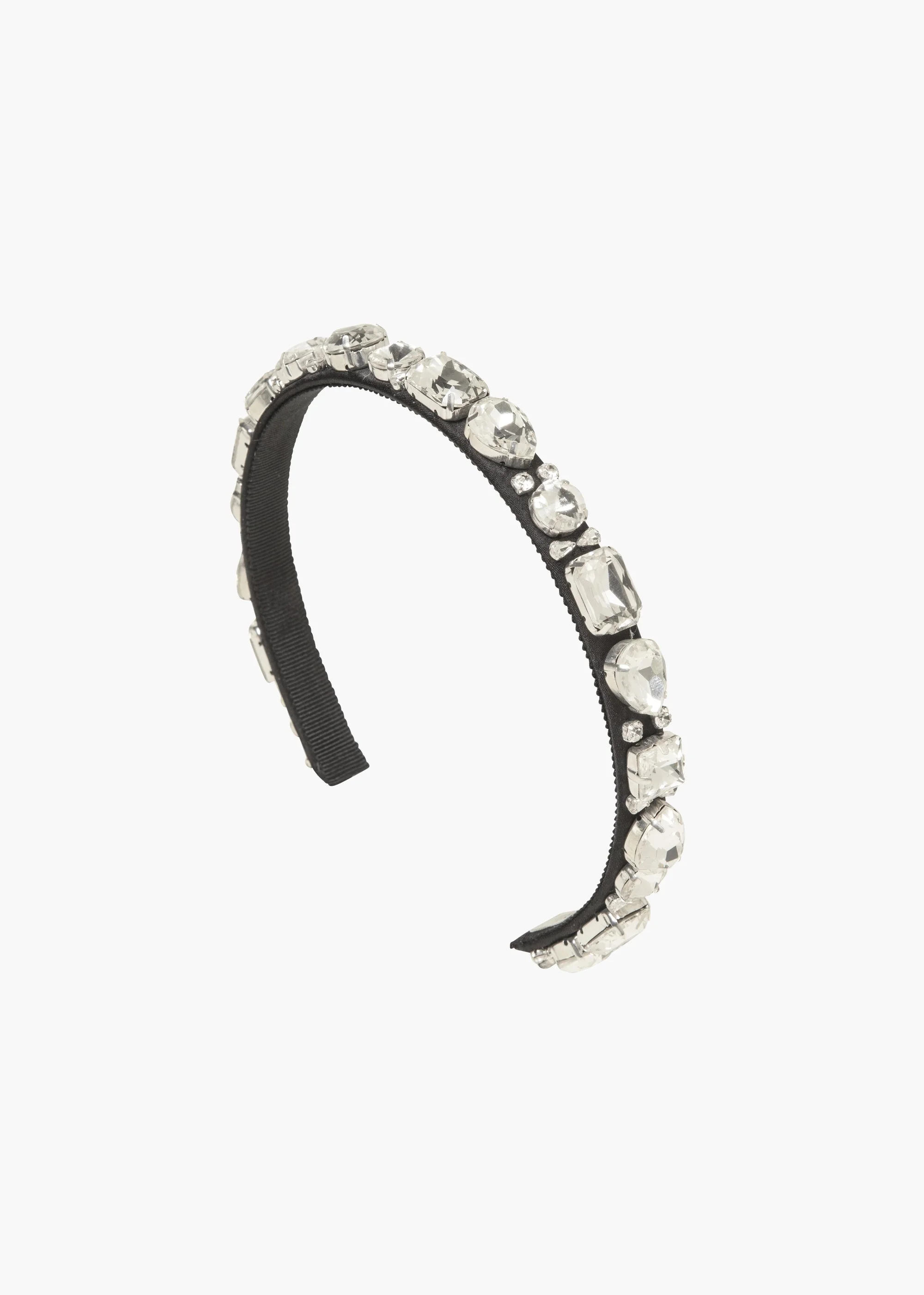 The Lucia Headband's irreverent approach is a breath of fresh air, emblazoned with hand-embroidered crystals in a range of cuts and shapes. The flexible and comfortable headband base means this elevated essential is easy to slip onto any look. Collect multiple colors, and consider layering two at a time for the ultimate impact. Material The Lucia Headband is crafted in New York from hand-embroidered crystals on silk satin and is lined in grosgrain to ensure ultimate comfort and promote hair health. We recommend storing headbands in their dust bag while not in use. Avoid contact with water, perfume, and other chemicals, including hairspray, which should be used only before placement in the hair.