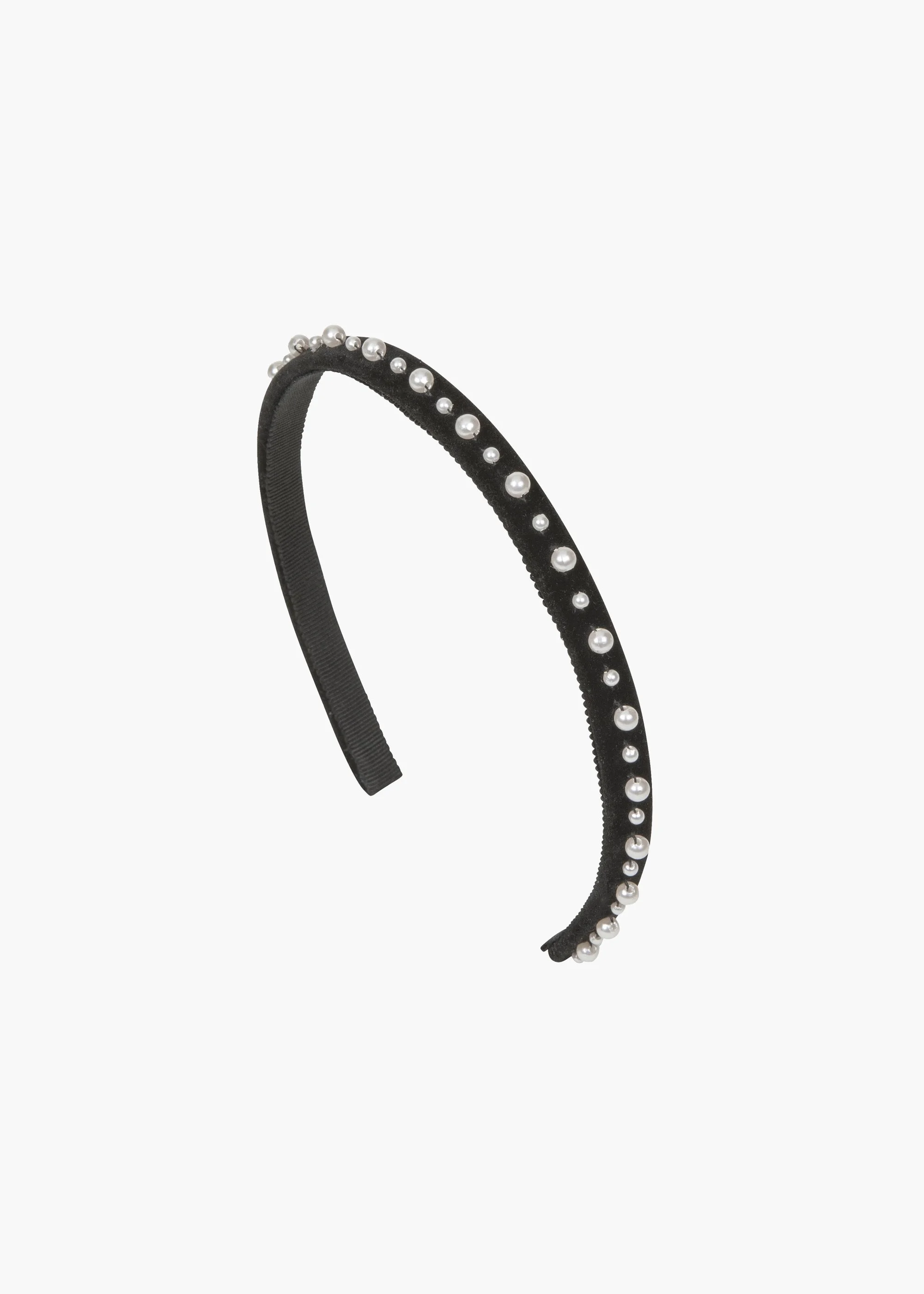 With delicate pearl embellishment, the Lulu Headband adds elegance to any look it's paired with. The pearls sit in a row on a whisper-thin black velvet headband, crafted in New York and designed to comfortably mold to your head, with a flexible fit. Material The Lulu Headband is made by hand in New York of embroidered pearl embellishment, on a velvet fabric base, with a grosgrain-lined interior to promote hair health and ensure the headband stays in place. We recommend storing headbands in their dust bag while not in use. Avoid contact with water, perfume, and other chemicals, including hairspray, which should be used only before placement in the hair.