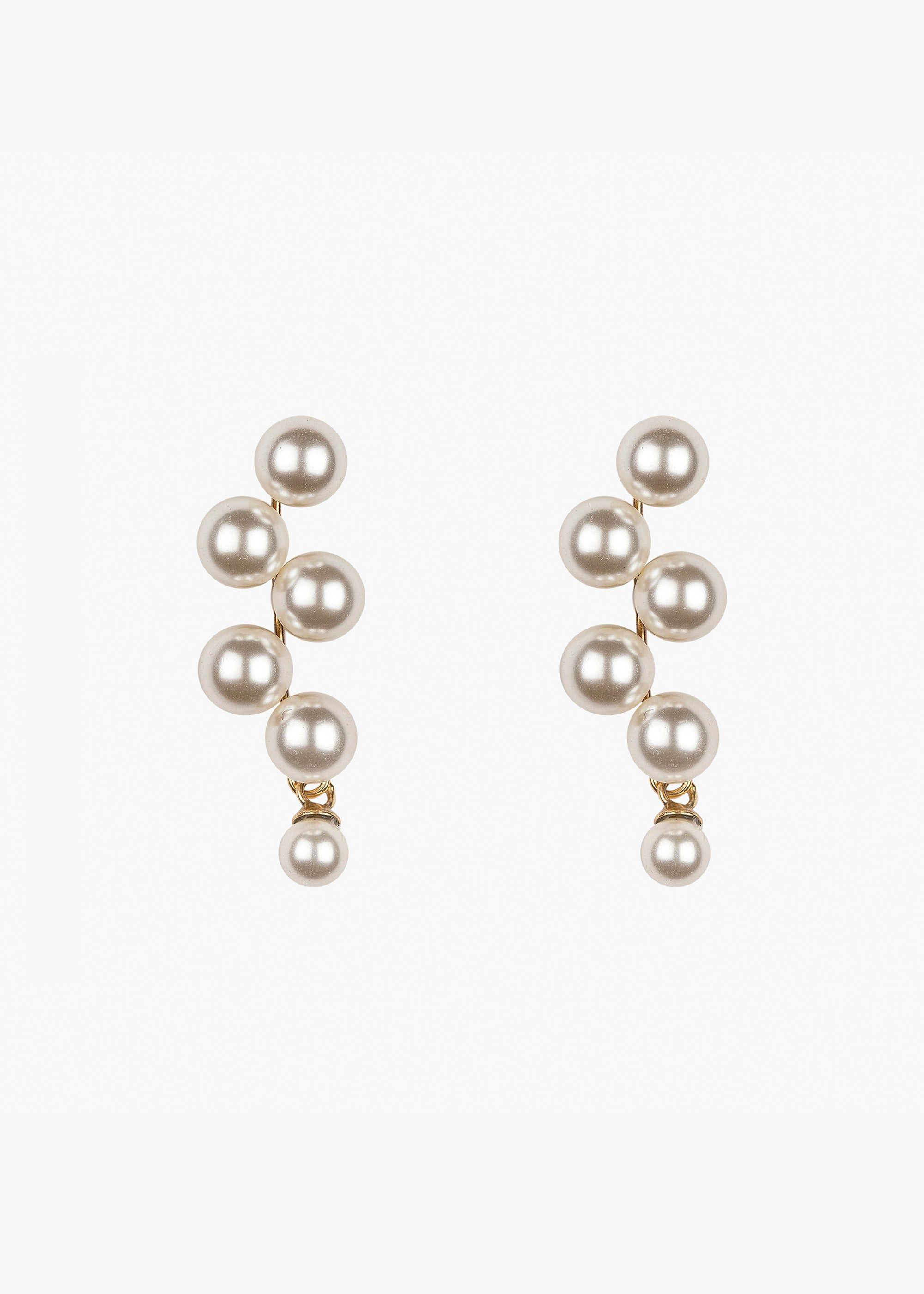 Pearls are a classic, and the Marcella is our twist: ladylike, but definitely not your mother's pearls. These feminine earrings are made by hand in our Brooklyn studio with luminous crystal pearls. The Marcella Earring coordinates perfectly with our other pearl hair accessories, like the Perla Bobby Pins. Dimensions: 1.75 x 0.5 inches; Weight: 16.5g each Material This is a post earring with a surgical-steel post. Our earrings are nickel-free and safe for sensitive skin. The Marcella Earring is crafted by hand in New York from pearls. We recommend storing earrings in their dust bag while not in use, and avoiding contact with water, perfume, hairspray, and other chemicals.