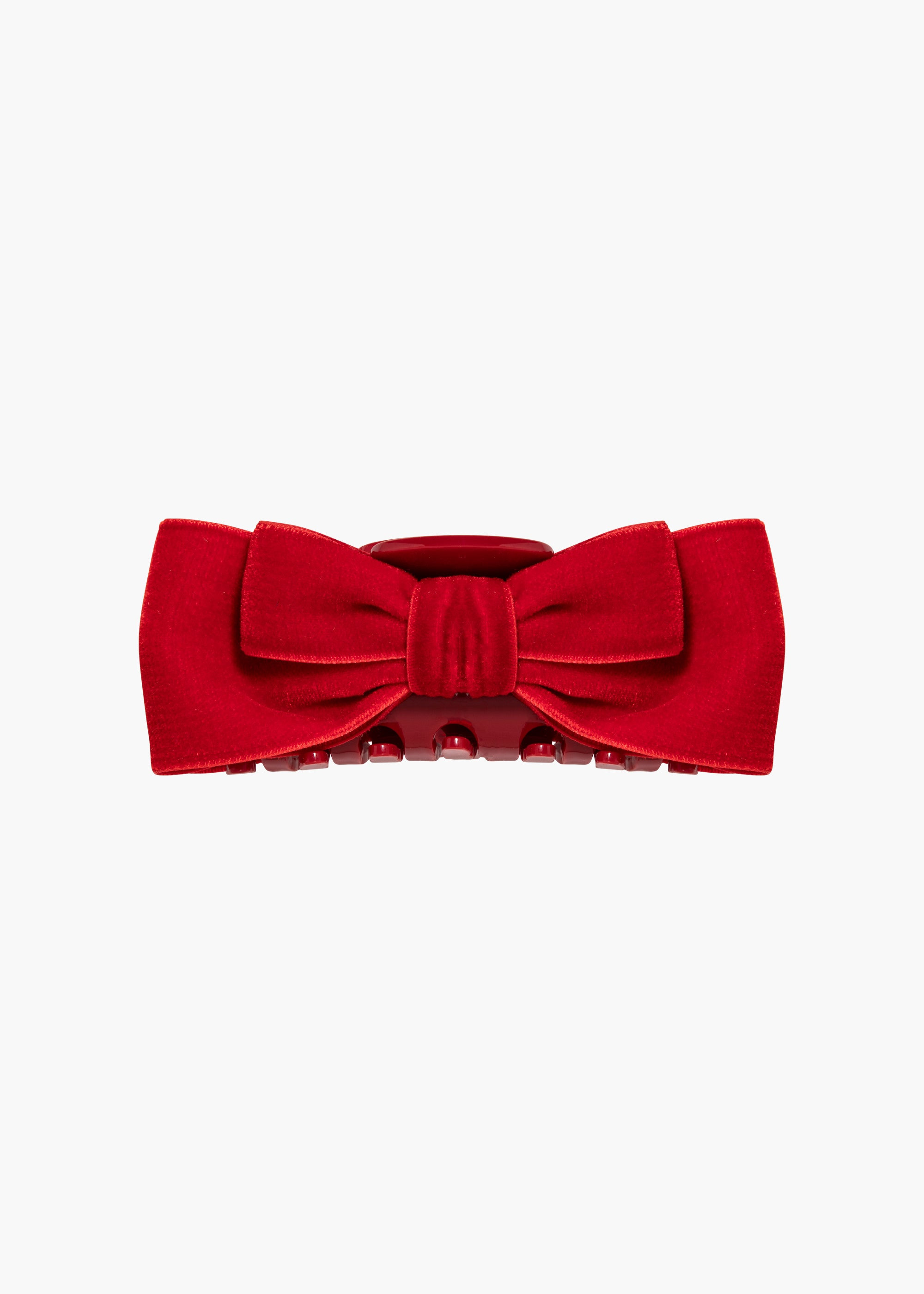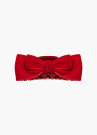 Our adored velvet bow just received the jaw-clip treatment: the Matilda Jaw Clip is the accessory you don't want to run out the door without. Luxe velvet ribbon forms graduating layers of bows, for dimension and volume. These delicious bows sit on a sturdy acrylic resin jaw clip, making it easy to sweep hair half-up, all the way back, and into any style in between. Material The Matilda Jaw Clip is made by hand in New York of velvet ribbon, with an acrylic resin claw clip. We recommend treating this clip as you would a piece of jewelry, and storing in the dust bag when not in use. Avoid contact with water, perfume, and other chemicals, including hairspray, which should be used before placement in the hair.