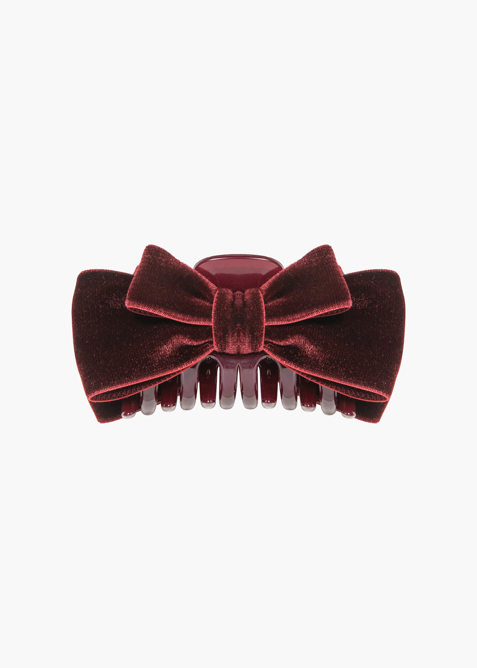 Our adored velvet bow just received the jaw-clip treatment: the Matilda Jaw Clip is the accessory you don't want to run out the door without. Luxe velvet ribbon forms graduating layers of bows, for dimension and volume. These delicious bows sit on a sturdy acrylic resin jaw clip, making it easy to sweep hair half-up, all the way back, and into any style in between. Material The Matilda Jaw Clip is made by hand in New York of velvet ribbon, with an acrylic resin claw clip. We recommend treating this clip as you would a piece of jewelry, and storing in the dust bag when not in use. Avoid contact with water, perfume, and other chemicals, including hairspray, which should be used before placement in the hair.