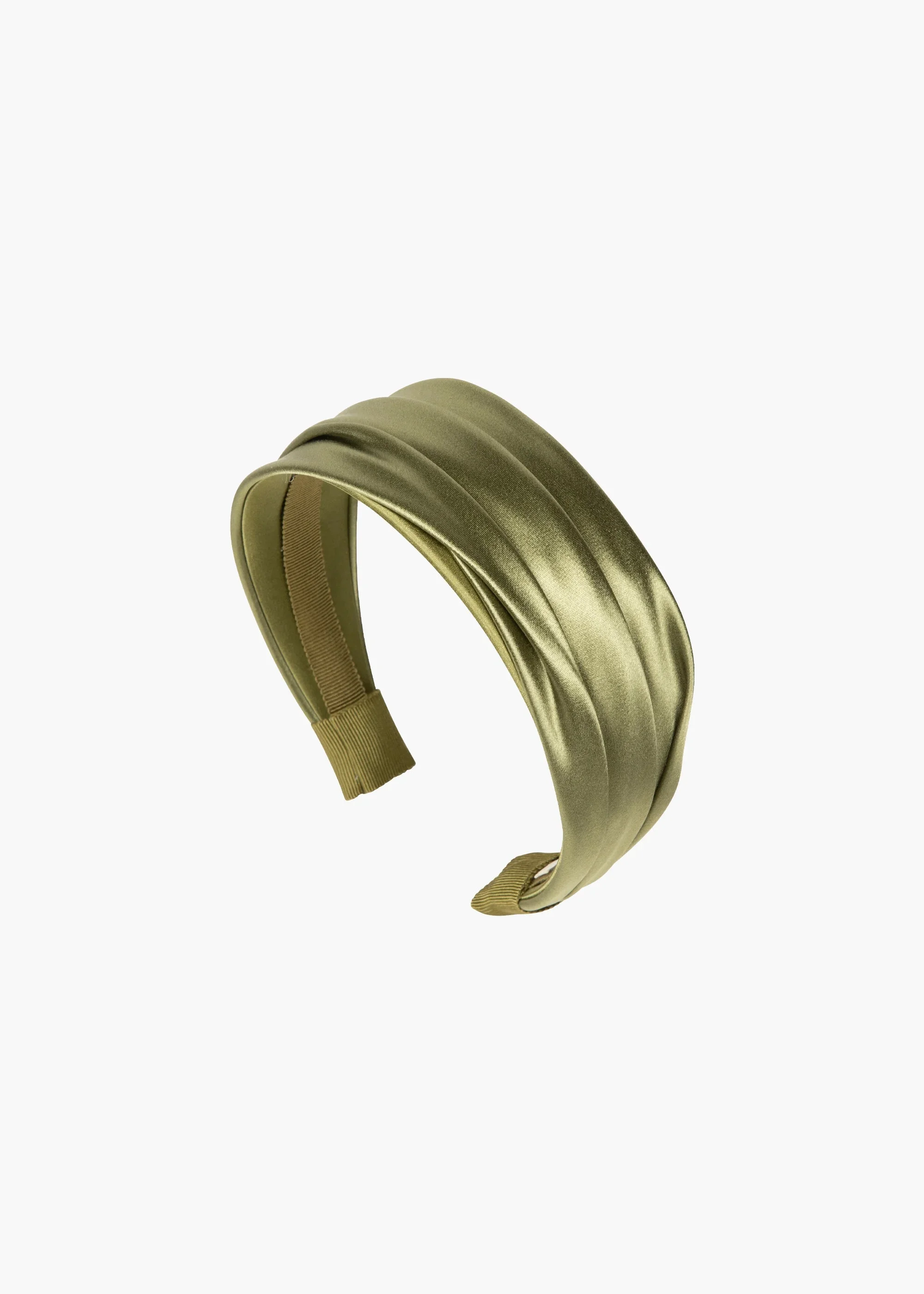 Introducing the all new Natasha Headband. This fresh silhouette features hand draped silk on our classic flexible wide headband base. Our handcrafted draping makes each headband completely one-of-a-kind and creates a beautiful depth of color. This style will be your new favorite for everyday, and pairs perfectly with earrings . Dimensions: 2 inch width Material The Natasha Headband is made by hand in New York from silk and lined in grosgrain to ensure ultimate comfort and promote hair health. We recommend storing headbands in their dust bag while not in use. Avoid contact with water, perfume, and other chemicals, including hairspray, which should be used only before placement in the hair.