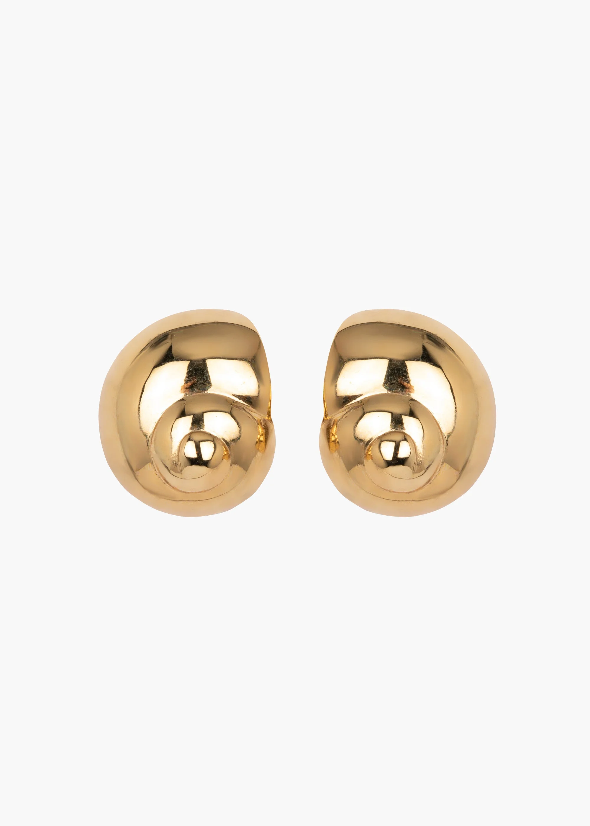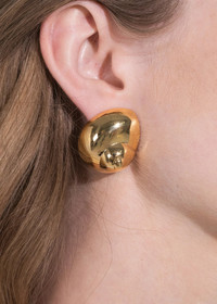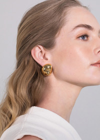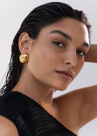 The Natica Stud Earrings seamlessly combine organic and modern forms, in a chic gold earring. Welcoming a less-is-more approach to summertime dressing, these studs convey understated luxury. Their compact size encourages them to be added to any ensemble with ease. Dimensions: 1.25 inch length Material The Natica Stud Earrings are made by hand in New York from 18K gold plated brass. They have a surgical-steel post, are nickel-free, and safe for sensitive skin. To protect their high shine finish, we recommend storing the earrings on their paper card and placing them in their dust bag while not in use to avoid them from being scratched by each other or other jewelry. We also recommend avoiding contact with water, perfume, hairspray, and other chemicals.