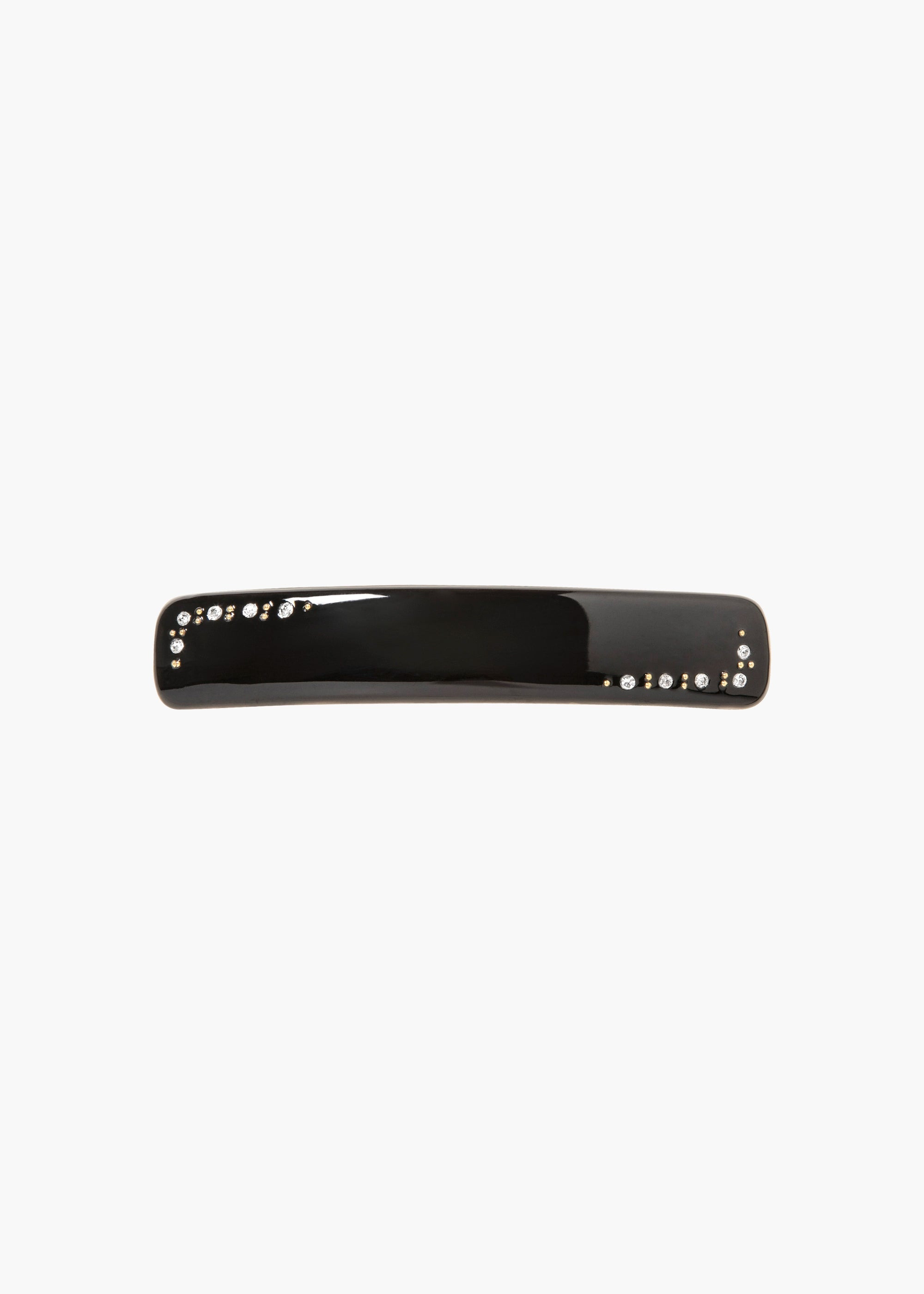 From the latest crop of rare vintage hair accessories we sourced by hand in France, the Nora Vintage French Barrette was crafted by hand between the 1920s and 1950s, when France was especially famous for producing luxurious hair accessories. Crafted from cellulose acetate and inset Austrian crystal, the oblong barrette is curved to naturally follow the shape of the head. It's finished with an automatic French barrette clasp for easy and secure placement in any hairstyle. Material The Nora Vintage French Barrette is made by hand in France from inset Austrian crystal and vintage cellulose acetate, with a French barrette closure. We recommend treating this clip as you would a piece of jewelry, and storing in the dust bag when not in use. Avoid contact with water, perfume, and other chemicals, including hairspray, which should be used before placement in the hair.