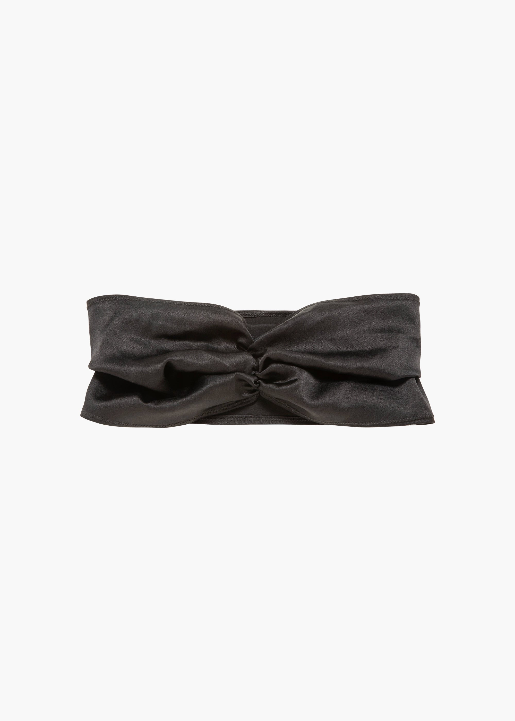 The boudoir-inspired Norma Headwrap channels the magnetic energy of an Old Hollywood starlet. Made by hand in New York, the stretch silk charmeuse is draped by hand to achieve its ultra-specific shape. It can be worn with the gathering in the front, or reversed and worn with the gathering in the back, for two wholly unique looks in one versatile piece. Material The Norma Headwrap is made in New York from hand-draped stretch silk satin, featuring a hand-draped twist accent which can be worn in the front or back. We recommend storing headwraps in their dust bag while not in use. Avoid contact with water, perfume, and other chemicals, including hairspray, which should be used only before placement in the hair.