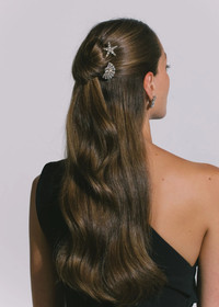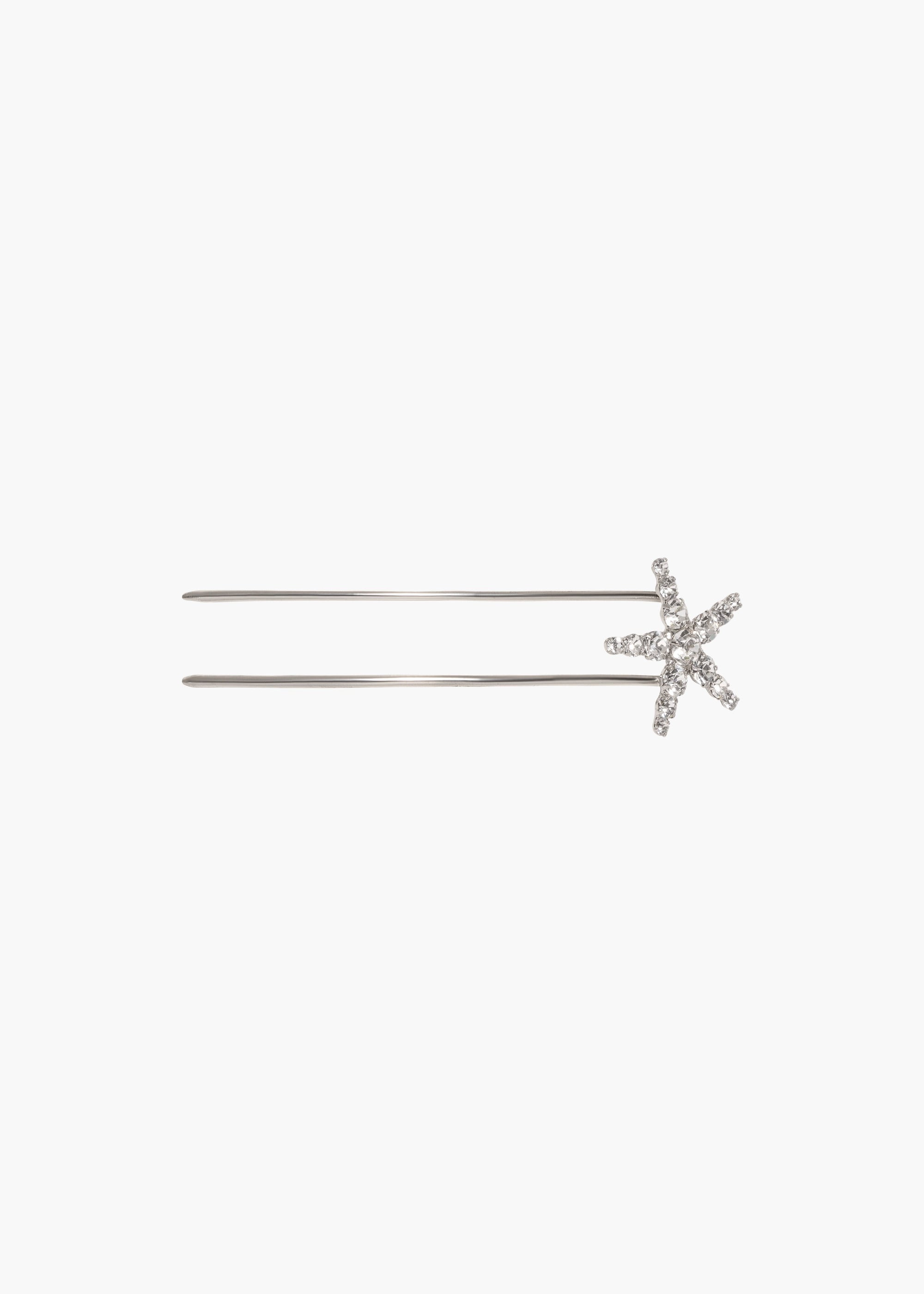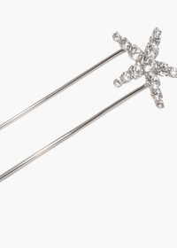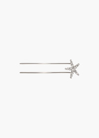 Featuring our iconic star motif, the Nova Hairpin is ready to twist hair back in an instant. Made by hand in New York, the star is set with sparkling Austrian crystals. The handmade rhodium-plated hairpin it sits on is designed to firmly hold twisted hair in place. Dimensions: 4" x 1.25" Material The Nova Hairpin is made in New York of Austrian crystals on a rhodium plated steel hair pin, designed to stay firmly in place. We recommend treating each pin as you would a piece of jewelry, and storing in the dust bag when not in use. Avoid contact with water, perfume, and other chemicals, including hairspray, which should be used before placement in the hair.