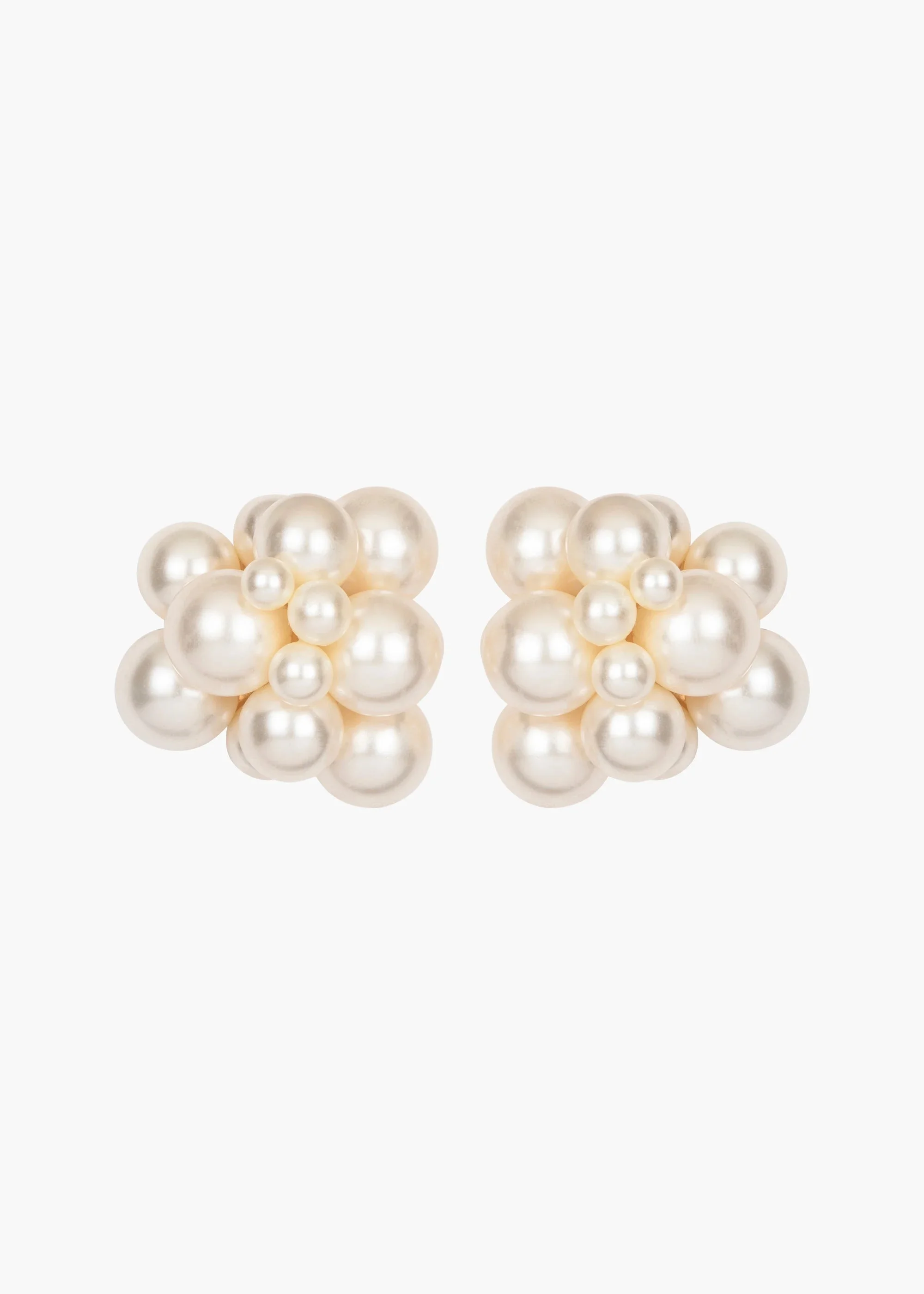 The Paula Earrings are a modern nod to classic pearls, arranged in a clustered silhouette that feels sculptural and fresh. Each earring features a mix of Czech crystal pearls in varying sizes, creating soft dimension and a luminous, full-bodied glow. Set in an 18k gold–plated base, they’re an effortless statement—elevated, elegant, and endlessly wearable. Dimensions: 1 3/8in x 1 3/8in Material The Paula Earrings are made by hand in New York from 18K gold plated brass and Czech crystal pearls. They have a surgical-steel post, are nickel-free and safe for sensitive skin. We recommend storing earrings in their dust bag while not in use, and avoiding contact with water, perfume, hairspray, and other chemicals.