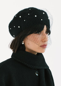 The Pearl Voilette Beret adds an element of French-girl style to even the most routine cold weather looks, whether you're buzzing around town or somewhere high atop the slopes. Made by hand in our Brooklyn studio, it's knit from the softest alpaca yarn with a luxurious hand feel; alpaca is known for its unparalleled ability to insulate warmth, while remaining entirely breathable for comfort. Each hat is hand-embellished with pearl details, and finished with a signature Jennifer Behr voilette. Material The Pearl Voilette Beret is made by hand in New York from an 100% alpaca knit, Austrian crystal pearls, and French nylon veiling. We recommend storing hats in their dust bag when not in use, and avoiding contact with water, perfume, hairspray, and other chemicals.