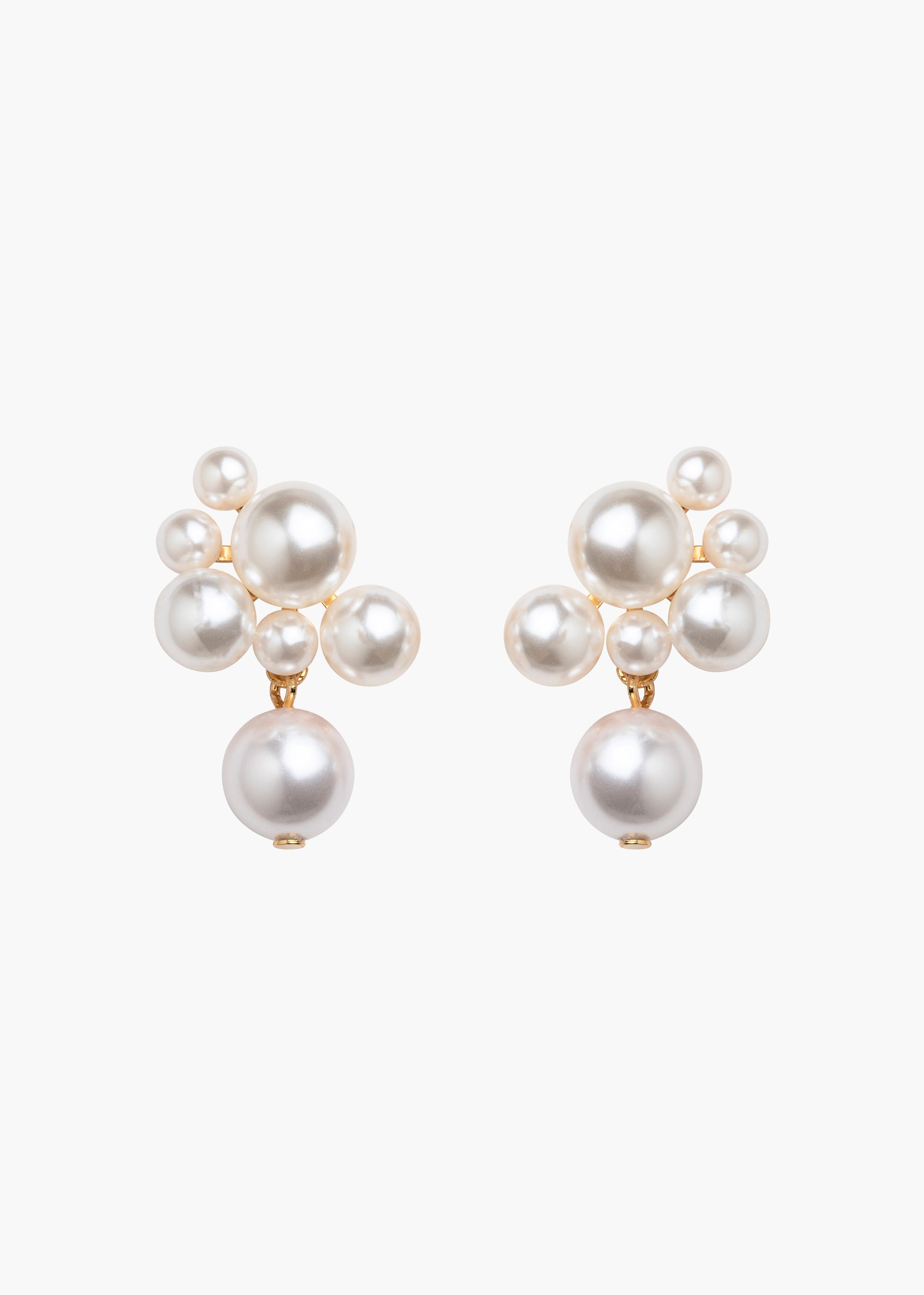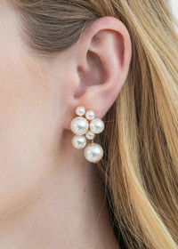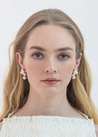 The subtly eye-catching Perlita Earrings are a timeless update on a classic pearl drop. Stunning in their simplicity, the arrangement of pearls appears to be bursting with life. A single hinged pearl drop rounds out the look with gentle movement. Dimensions: 1.25 inch length Material The Perlita Earrings are made by hand in New York from 18K gold plated brass and crystal pearls. They have a surgical-steel post, are nickel-free, and safe for sensitive skin. We recommend storing earrings in their dust bag while not in use, and avoiding contact with water, perfume, hairspray, and other chemicals.