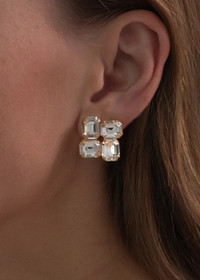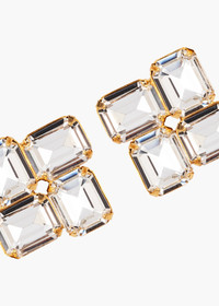 Inspired by Cubist painters, the Piccolo Earrings are a play on color and form, featuring emerald-cut stones in a mosaic-like arrangement. Made by hand in New York, the fine Austrian crystals are prong-set in an 18-karat gold-plated setting. We love that these earrings can be dressed up or down in a variety of looks. Dimensions: 3/4in x 3/4in Material The Piccolo Earrings are made by hand in New York from 18K gold plated brass and Austrian crystals. They have a surgical-steel post, are nickel-free, and safe for sensitive skin. We recommend storing earrings in their dust bag while not in use, and avoiding contact with water, perfume, hairspray, and other chemicals.