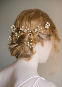 The Primavera Hair Pins were inspired by the ethereal essence of a Botticelli painting. Each pin in this set of three is comprised of numerous Swarovski pearls, which are meticulously strung by hand in our Brooklyn studio, creating a diaphanous spray of pearls with the illusion they're floating in midair. Consider pairing with the matching Primavera Circlet, or mixing with the Perla Bobby Pins. Packaging Dimensions: 6.5 x 6.5 x 1.75 inches Weight: Material The Primavera Hair Pins are a set of three, handmade in New York of Swarovski pearls on a durable steel bobby pin, designed to stay firmly in place, once other pins have the hairstyle securely fastened. We recommend treating each pin as you would a piece of jewelry, and storing in the dust bag when not in use. Avoid contact with water, perfume, and other chemicals, including hairspray, which should be used before placement in the hair.