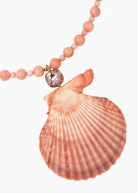 Seeped in beachside romance and wanderlust, the Roma Necklace features a genuine scallop seashell on a strand of faceted semi-precious stones, subtly graduated in size. This piece is designed to showcase a natural wonder in all its glory, with edges that are polished to rest comfortably on the neck. Made by hand in New York, each individual shell has been selected for its unique features, making each necklace one-of-a-kind. Dimensions: 17 inch length Material The Roma Necklace is handmade in New York of hand-carved semiprecious coral, citrine, or turquoise gemstones with a natural seashell and Czech crystal pendant, and 18K gold plated brass T-bar and loop clasp. All stones and shells have natural variances in color and markings that make each one unique. We recommend storing necklaces in their dust bag while not in use, and avoiding contact with water, perfume, hairspray, and other chemicals.