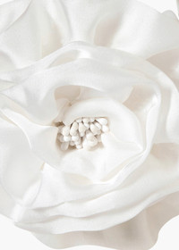 The Rose Jaw Clip is crafted from pure silk, uniquely draped by hand to form a rosette. This easy-to-wear accessory is complete with elevated details, including a textured center, which forms the flower's pistil. It's mounted on a sturdy acetate resin claw clip, for secure placement no matter how you style it. Dimensions: 3.5 inch width, 3 inch length Material The Rose Jaw Clip is made by hand of silk fabric with an acetate resin claw clip. We recommend treating this clip as you would a piece of jewelry, and storing in the dust bag when not in use. Avoid contact with water, perfume, and other chemicals, including hairspray, which should be used before placement in the hair. Imported.