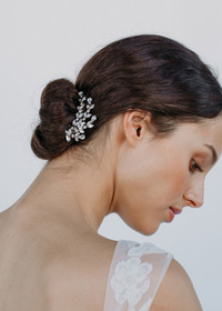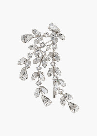 The Roselyn Bobby Pin makes adding a touch of elegance to your look effortless. Inspired by the beauty of vines cascading in nature, a mix of teardrop, oval, and round crystals form delicate branches that fall from the central bobby pin. Try pulling back a few strands of hair and adding the Roselyn Bobby Pin to illuminate and frame the face. Or, gently slide it into a chignon for a romantic look. Discover the coordinating Roselyn Headband and Roselyn Earrings for more ways to get the look. Material The Roselyn Bobby Pin is made in New York of crystal on a silver plated bobby pin, designed to stay firmly in place, once other pins have the hairstyle securely fastened. We recommend treating each pin as you would a piece of jewelry, and storing it in the dust bag when not in use. Avoid contact with water, perfume, and other chemicals, including hairspray, which should be used before placement in the hair.