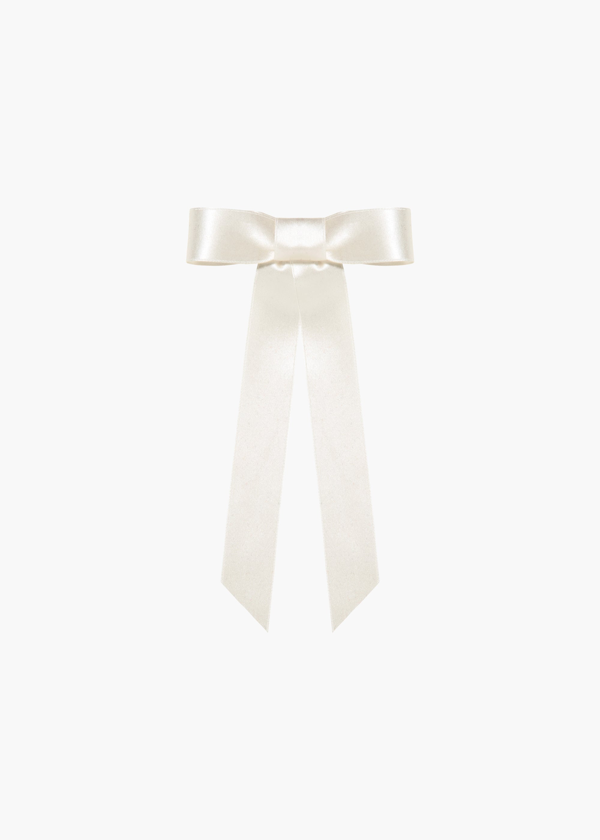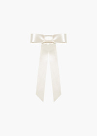 An instant classic, the Sasha Bow Barrette is an essential addition to any collection. Made by hand in New York, the simple design is underscored by skillful hand-craftsmanship, using the finest of silk. It's complete with an automatic French barrette closure for easy placement in any style, and any hair type. Material The Sasha Bow Barrette is made by hand in New York of silk ribbon and finished with a steel French barrette closure. We recommend treating this bow as you would a piece of jewelry, and storing in the dust bag when not in use. Avoid contact with water, perfume, and other chemicals, including hairspray, which should be used before placement in the hair.