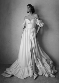 Our best-selling Tori Headband is now available with veiling, for the perfect finishing touch for a modern, fashion-forward bridal look. The Tori Voilette Headband features padded height and delicate veiling. Each headband is hand-crafted with love in our Brooklyn studio. Discover more veiling options for your special moments. Dimensions: 1 inch width Material This Tori Voilette Headband is made by hand in New York from satin, with a silk rayon blend veil. We recommend storing headbands in their dust bag while not in use. Avoid contact with water, perfume, and other chemicals, including hairspray, which should be used only before placement in the hair.