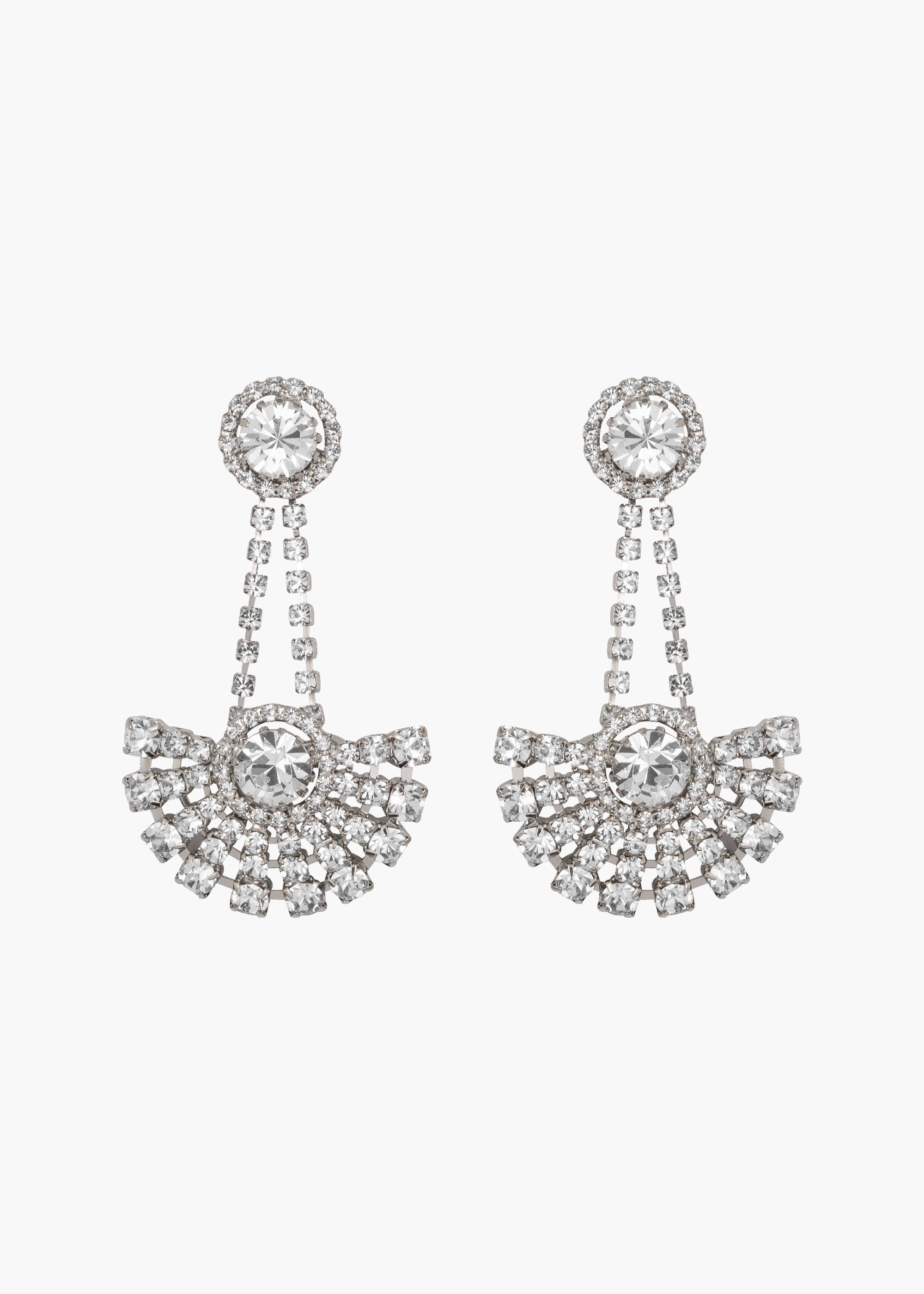 Inspired by Art Deco architecture, the Velma Earrings have an undeniably Gatsby-esque appeal. Rendered in fine Austrian crystal, the stones crescendo in size, creating a sense of depth and movement. Made by hand in New York, the drops sway like mesmerizing pendulums for an intoxicating effect. Dimensions: 2.25" length Material The Velma Earrings are made by hand in New York from Austrian crystals and 18k gold or rhodium plated brass. They have a surgical-steel post, are nickel-free and safe for sensitive skin. We recommend storing earrings in their dust bag while not in use, and avoiding contact with water, perfume, hairspray, and other chemicals.