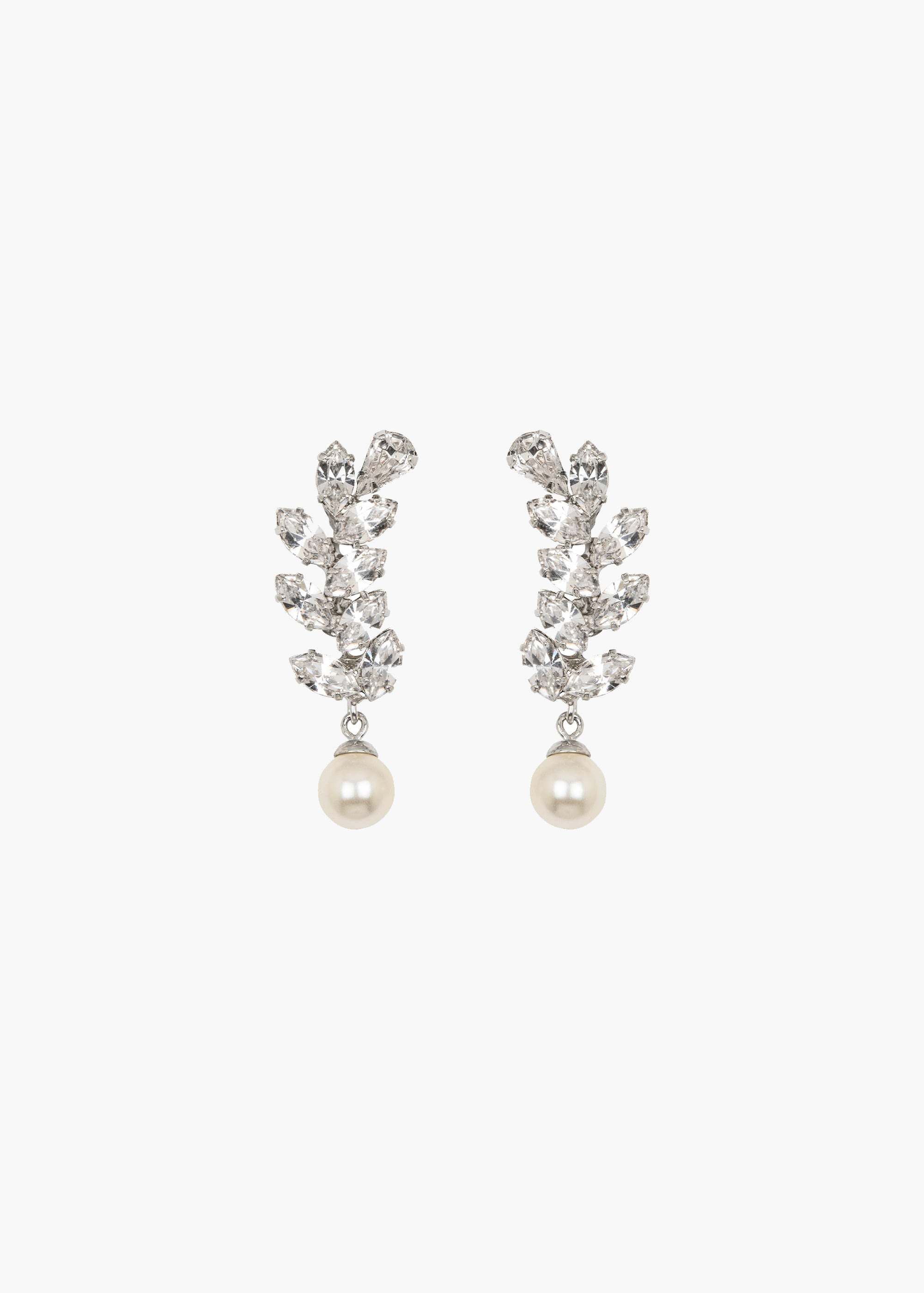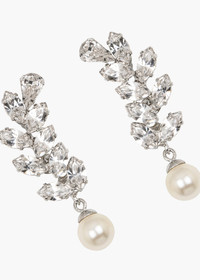 Strike an air of elegance in the Verla Earrings. Their drop forms a subtle serpentine shape, framing the face with a flattering glow. Made by hand in New York, the individually-set fine crystals create a blinding sparkle, while the pearl drop catches the light as it sways gently. Material The Verla Earrings are made by hand in New York, from rhodium plated brass, crystals, and crystal pearls. They have a surgical-steel post, are nickel-free, and safe for sensitive skin. We recommend storing earrings in their dust bag while not in use, and avoiding contact with water, perfume, hairspray, and other chemicals.