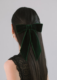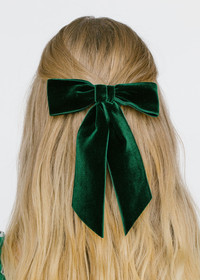 The Wide Velvet Bow Barrette is the larger sister of our classic Velvet Bow Barrette . Handmade in our Brooklyn studio, it features thick satin-edged silk velvet ribbon and a French barrette closure, making it easy to wear a multitude of ways, in any type of hair. This bow is a timeless addition to your hair collection. Dimensions: 6 x 9 inches Weight: 19g Material The Wide Velvet Bow Barrette is made by hand in New York of velvet ribbon with a steel French barrette closure. We recommend treating this bow as you would a piece of jewelry, and storing in the dust bag when not in use. Avoid contact with water, perfume, and other chemicals, including hairspray, which should be used before placement in the hair.