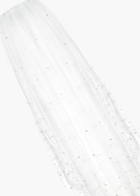 Say "I do" to the Willa Veil. This tulle veil is hand-embellished with individual pearls, creating the illusion of glistening pearls suspended midair, and sits on a hair comb for flawless placement in the hair. We love the idea of reverberating this motif by wearing it with one of our classic pearl earrings, like the Gretel Earring. Material The Willa Veil is made in New York of Austrian crystal pearl embellished illusion tulle on a rhodium plated comb for ease of placement in the hair. We recommend storing veils hung vertically in a secure place. Avoid contact with water, perfume, and other chemicals, including hairspray, which should be used only before placement in the hair.
