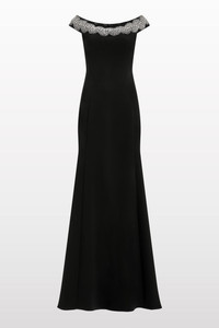 Azalea is the epitome of understated glamour, combining refined structure with luxurious embellishment. This elegant black gown is meticulously crafted to enhance the silhouette, featuring a structured bodice that transitions seamlessly into a fluid floor-length skirt. The off-the-shoulder neckline frames the decolletage with timeless femininity, elevated by intricate detailing that shimmers subtly under light. Embellishments are applied with precision, adding depth and texture without overwhelming the gown’s sleek lines. Ideal for black-tie weddings, formal galas, opera evenings, or upscale receptions, Azalea is a versatile luxury evening gown that balances classic design with modern sensibility. Its artful construction offer both drama and sophistication, making it a perfect choice for women who favor elegance with a touch of restraint. Whether on a red carpet or at an intimate high-society affair, Azalea ensures you exude confidence and timeless style.