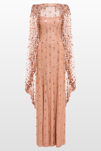 The Blaize gown is a breathtaking expression of elegance and refinement, crafted for moments that call for unforgettable glamour. Rendered in a soft, ethereal hues, this floor-length gown features exquisite hand-sewn embellishments, with delicate sequins and crystals cascading in vertical lines that elongate the silhouette. The fitted bodice seamlessly flows into a fluid skirt, while the sheer cape sleeves, adorned with shimmering beadwork, create a sense of movement and dramatic allure. Radiating sophistication, the Blaize is designed for grand occasions—from black-tie galas to evening receptions—where timeless style meets contemporary grace. Pair with subtle heels and fine jewelry for a look that exudes understated luxury while commanding attention.