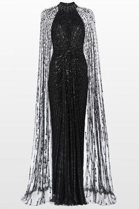 Vibrant, bold, and unforgettable, the Cairo mini dress is crafted for celebrations and evenings where every detail matters. Featuring a fitted bodice with a plunging neckline and a daring crossover back, this dress flatters the figure while adding a contemporary twist. The densely packed sequins create a textured, light-catching effect that dazzles from every angle, while the softly gathered waist ensures a balanced, flattering silhouette. The piece de resistance is the sheer, floor-length cape adorned with matching sequins, creating a stunning layered effect and a dramatic entrance. Pair with strappy stilettos, statement earrings, and a bold lip to amplify its party-ready glamour. Ideal for cocktail parties, high-profile social events, evening receptions, or special occasions where making a grand impression is essential, the Cairo dress is designed for women who embrace bold elegance and a playful, confident aesthetic.