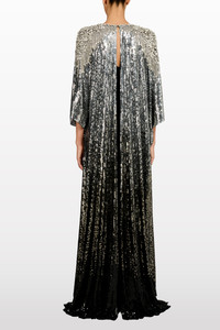 Make an unforgettable entrance in this radiant cape, designed to blend modern glamour with timeless elegance. The fluid silhouette drapes effortlessly over the shoulders, with wide sleeves that create graceful movement. All-over sequins catch the light from every angle, while the elongated back hem adds a dramatic, sweeping finish. The perfect statement layer to elevate any evening look with bold sophistication and dazzling impact.