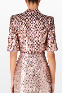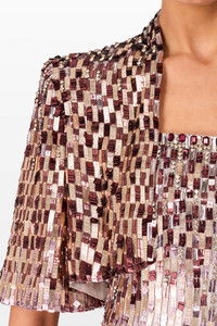 Make a bold yet sophisticated statement with the Cristobel sequin jacket — a cropped piece that blends modern structure with shimmering detail. Featuring intricate sequin embellishments arranged in a textured, eye-catching pattern, this open-front jacket offers both style and versatility. Structured shoulders add a sharp, tailored finish, while the cropped length makes it ideal for layering over gowns, dresses, or jumpsuits. This piece is perfect for adding a touch of glamour to evening receptions, gallery events, or festive formal occasions. Whether worn as part of a coordinated look or styled to elevate a minimalist ensemble, Cristobel adds an instant upgrade with its refined shine and contemporary edge.