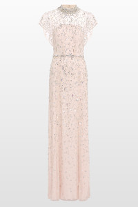 Delicate yet defined, the Crystal Drop gown captures the romance of a bygone era with a modern twist. A sheer, embellished overlay graces the shoulders and neckline, creating a soft illusion effect that floats above a tailored bodice. Intricate beading cascades down the silhouette, gradually dispersing into a fluid skirt that glides with quiet elegance. Ideal for formal soirees, weddings, or evening events where timeless beauty takes center stage.