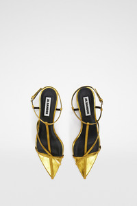 Pointed-toe laminated leather sandal with interwoven straps and low heel Details - pointed toe - metallic leather ankle straps with buckle - nappa leather insole and lining - calf leather sole with rubber injection - Jil Sander logo branded insole - 100% calf leather - made in Italy - StyleID: J15WP0129P4836704