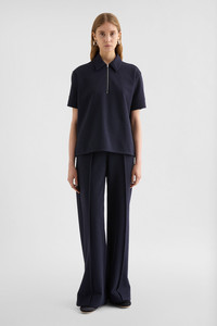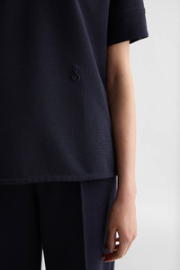 Short-sleeved technical compact cotton jersey t-shirt with embroidered Jil Sander monogram Details - regular fit and slightly dropped shoulders - polo collar with zip closure - embroidered Jil Sander monogram - side slits - buttoned cuffs - viscose lining - technical compact cotton jersey - 68% polyester 29% cotton 3% elastane-spandex - made in Italy - StyleID: J02GL0113J20018401 Care - dry clean only - iron with care Fit - model is 177cm/5'9" and is wearing a size 34 DE - Please note that the physical label of the item will show the German size