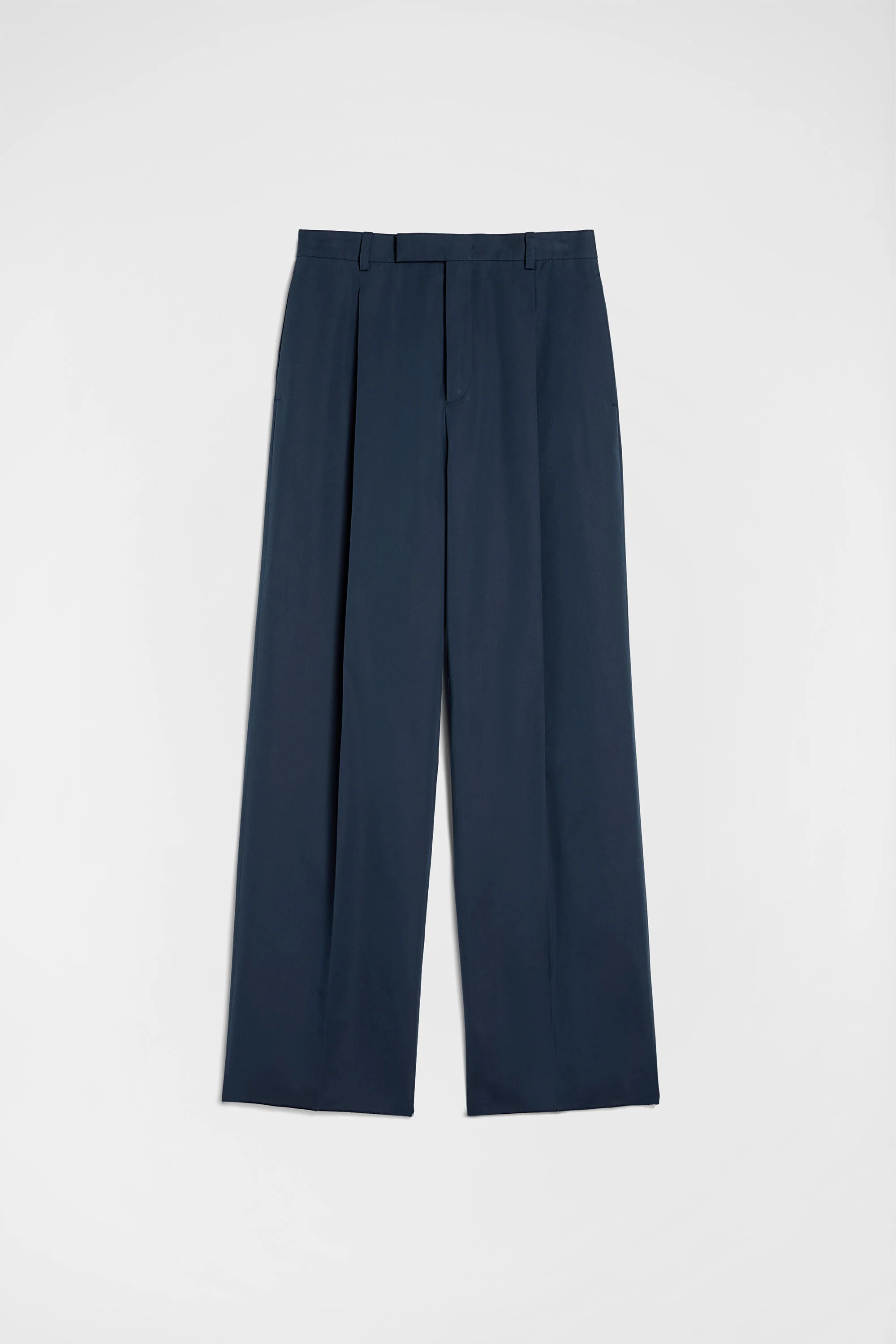Wide-leg cotton and silk poplin trousers with single pressed crease Details - relaxed fit - dropped crotch and regular waist - extended waistband with zip fly and hook closure - side-seam pockets and back welt pockets - cotton pocket lining - cotton and silk poplin - 86% cotton 14% silk - made in Italy - StyleID: J22KA0327J45266404 Care - dry clean only - iron with care Fit - model is 187cm/6'1" and is wearing a size 46 IT - Please note that the physical label of the item will show the Italian size