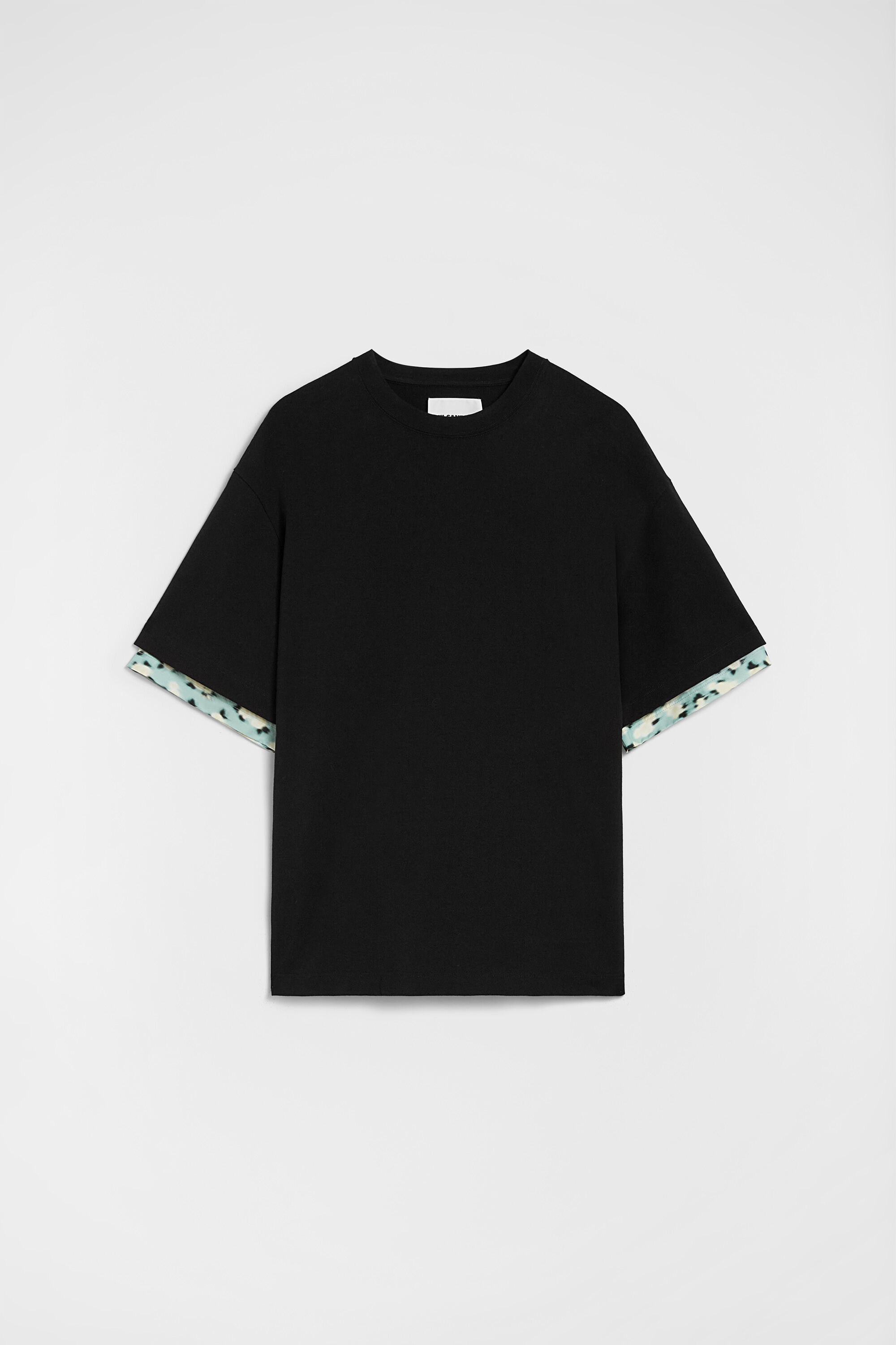 Short-sleeved cotton double-layer t-shirt with short sleeves underneath in printed fabric Details - oversized fit and boxy shape - dropped shoulders - single t-shirt with double-layer effect - Jil Sander logo tag on shoulder - watercolour mini flower on viscose underneath sleeves - lightweight compact cotton jersey - 100% cotton - made in Italy - StyleID: J61GC0029J20256053 Care - dry clean only - iron with care Fit - model is 187cm/6'1" and is wearing a size M - Please note that the physical label of the item will show the international size