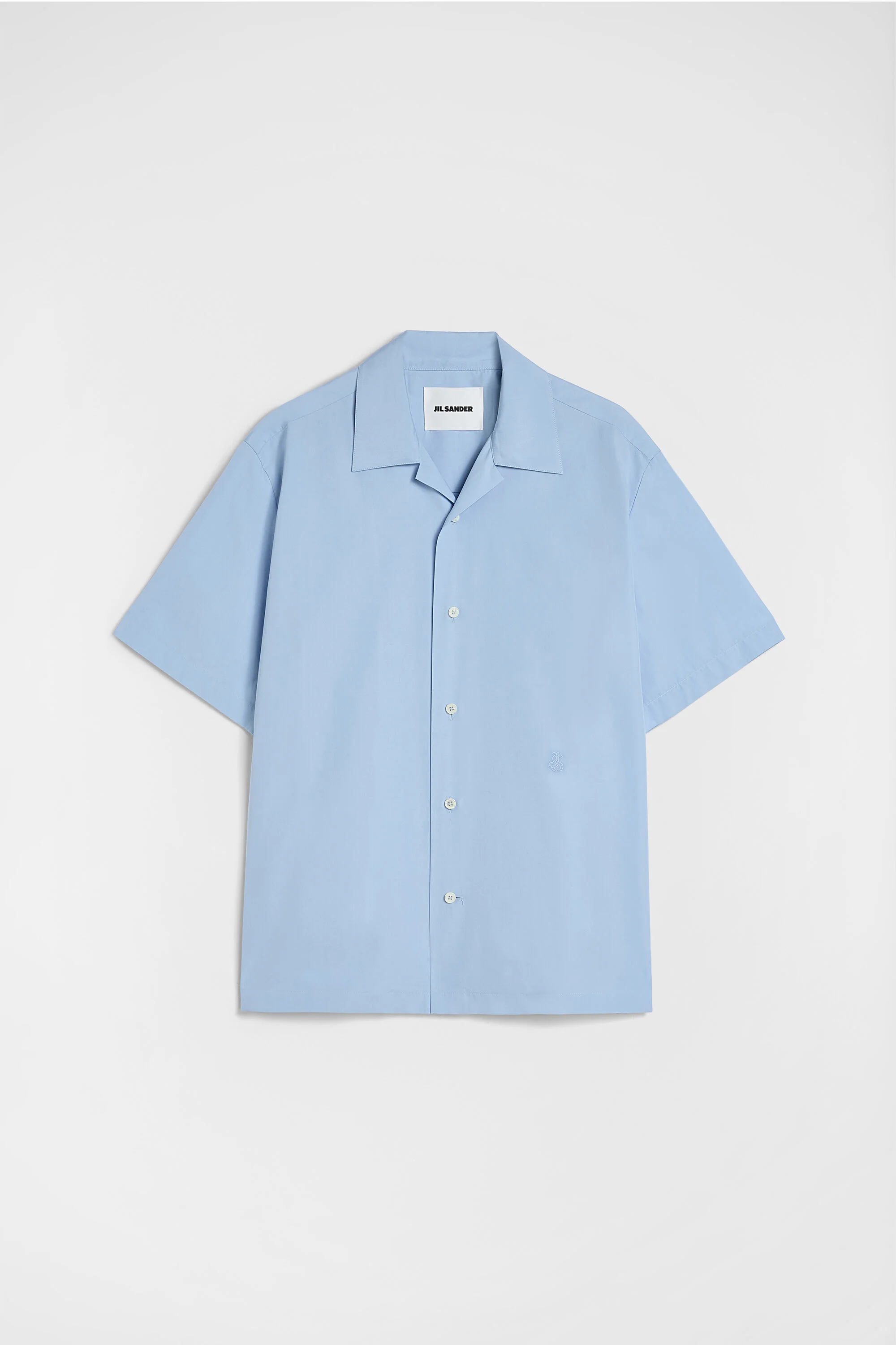 Short-sleeved cotton poplin shirt with embroidered Jil Sander monogram Details - relaxed fit and boxy shape - dropped shoulders and straight hem - open pressed collar - centre-front button closure - classic yoke - Jil Sander monogram embroidered on left side - organic cotton poplin - 100% cotton - made in Italy - StyleID: J22DL0363J45001458 Care - dry clean only - iron with care Fit - model is 187cm/6'1" and is wearing a size 48 IT - Please note that the physical label of the item will show the Italian size