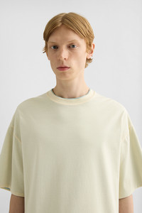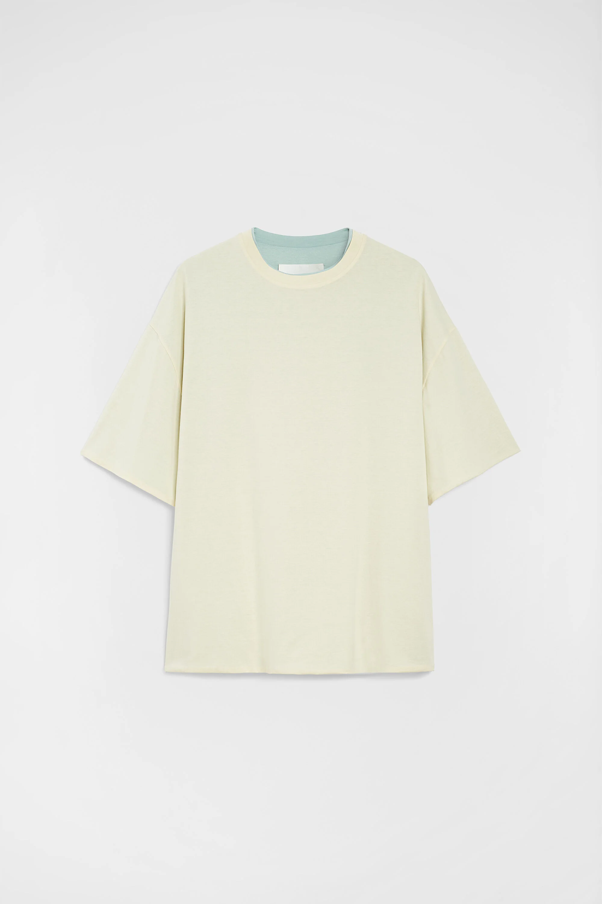 Short-sleeved two-toned cotton t-shirt with double layer effect and side Jil Sander logo tag Details - oversized fit and dropped shoulders - ribbed crew neck - Jil Sander logo tag on side seam - compact cotton jersey - 100% cotton - made in Italy - StyleID: J22GC0223J20325106 Care - dry clean only - iron with care Fit - model is 187cm/6'1" and is wearing a size M - Please note that the physical label of the item will show the international size