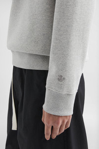 Long-sleeved cotton terry sweatshirt with embroidered Jil Sander+ monogram Details - relaxed fit - dropped shoulders - ribbed neck, hem and cuffs - triangle rib detail on front - Jil Sander+ logo embroidered on left sleeve - compact cotton terry - 100% cotton - made in Italy - StyleID: J47GU0128J20010052 Care - dry clean only - iron with care Fit - model is 187cm/6'1" and is wearing a size M - Please note that the physical label of the item will show the international size