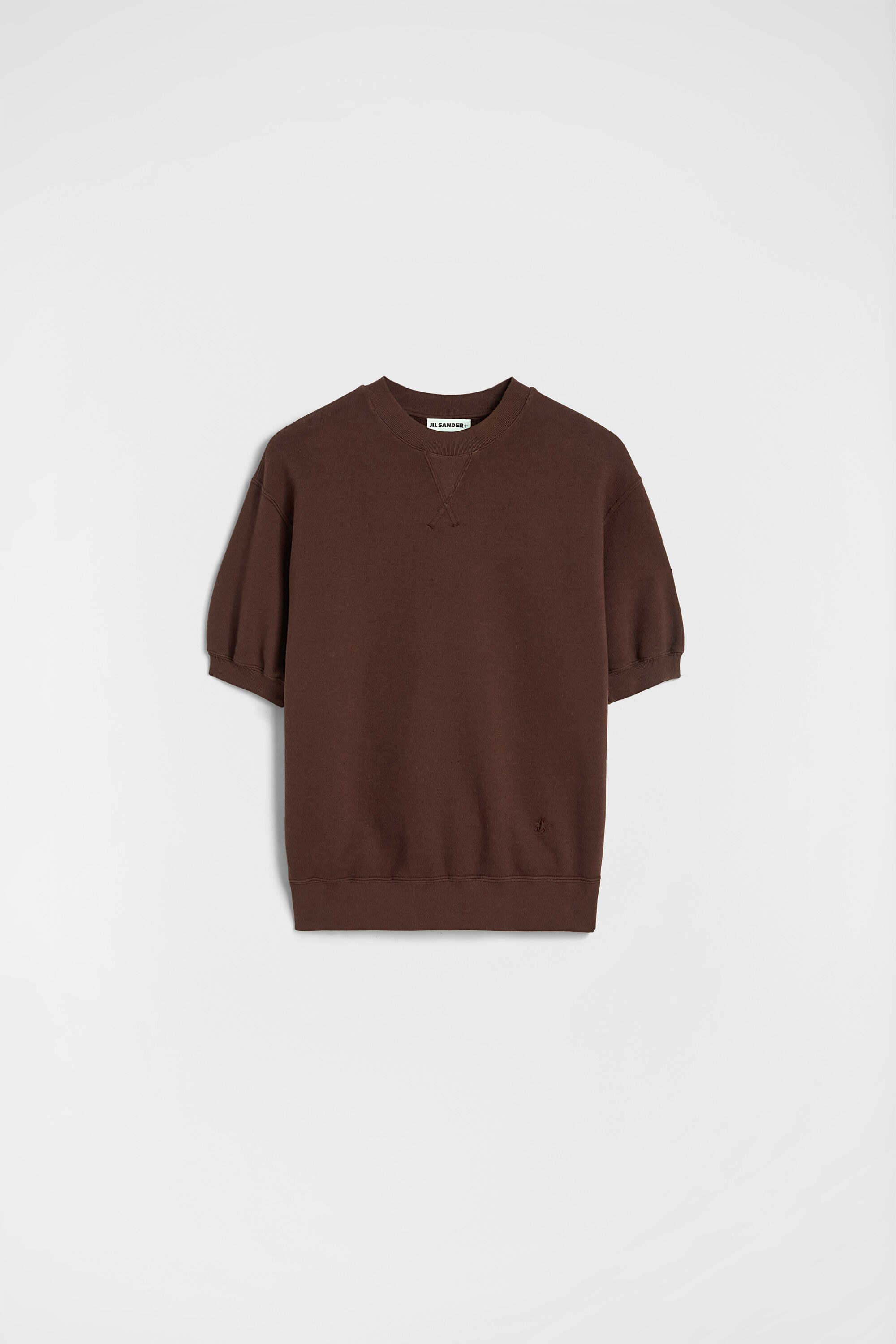 Short-sleeved cotton terry sweatshirt with embroidered Jil Sander+ monogram Details - oversized fit and dropped shoulder - triangle rib detail on shoulder - embroidered Jil Sander+ monogram - compact cotton terry - 100% cotton - made in Italy - StyleID: J40GC0137J20039602 Care - hand wash - iron with care Fit - model is 177cm/5'9" and is wearing a size S - Please note that the physical label of the item will show the international size