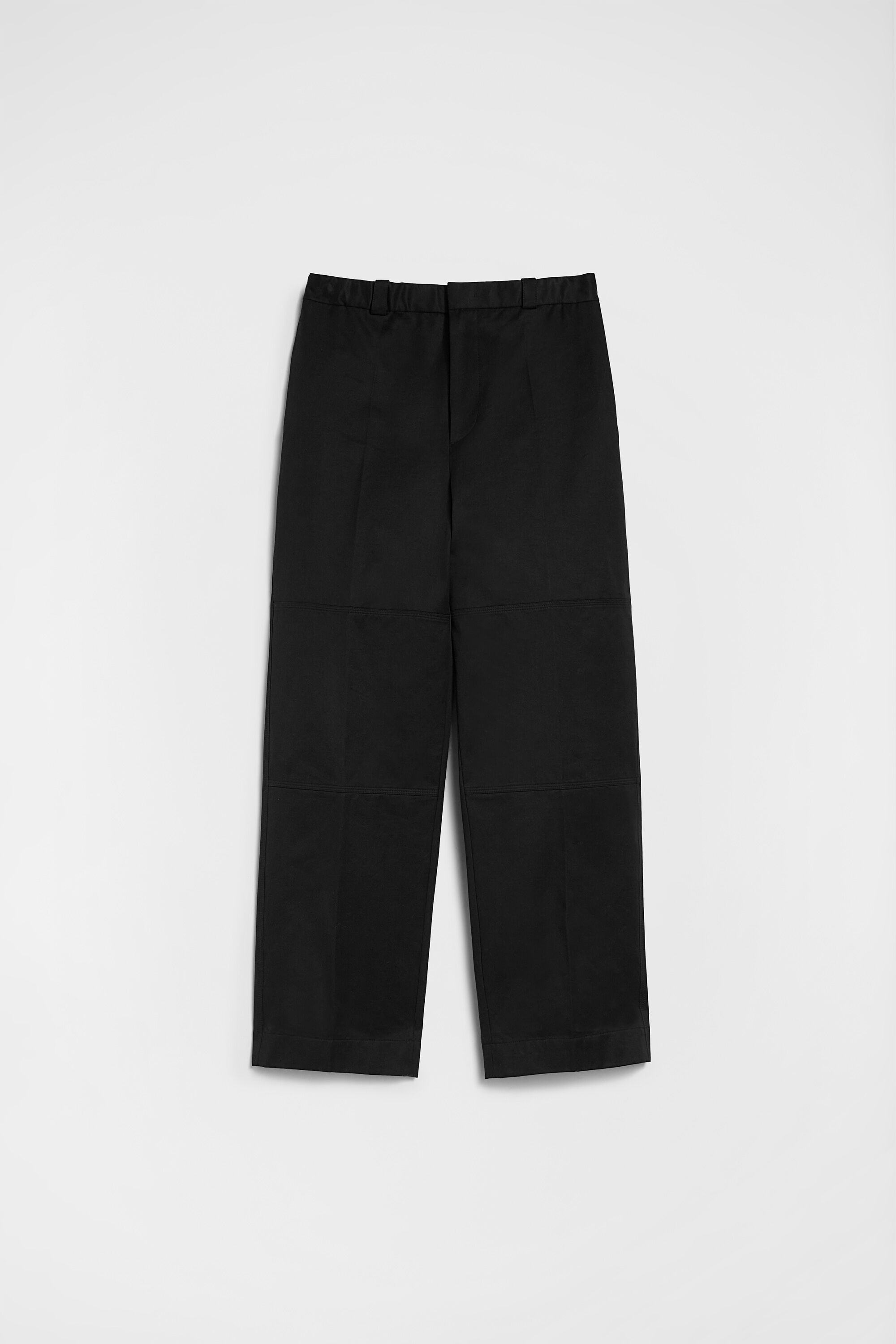 Straight-leg textured cotton trousers with elasticated waistband at back Details - relaxed fit - slightly dropped crotch and regular waist - elasticated waistband on back - zip fly and hook closure - side-seam pockets - back welt pockets - textured workwear cotton drill - 100% cotton - made in Italy - StyleID: J61KA0060J45307001 Care - dry clean only - iron with care Fit - model is 187cm/6'1" and is wearing a size 46 IT - Please note that the physical label of the item will show the Italian size
