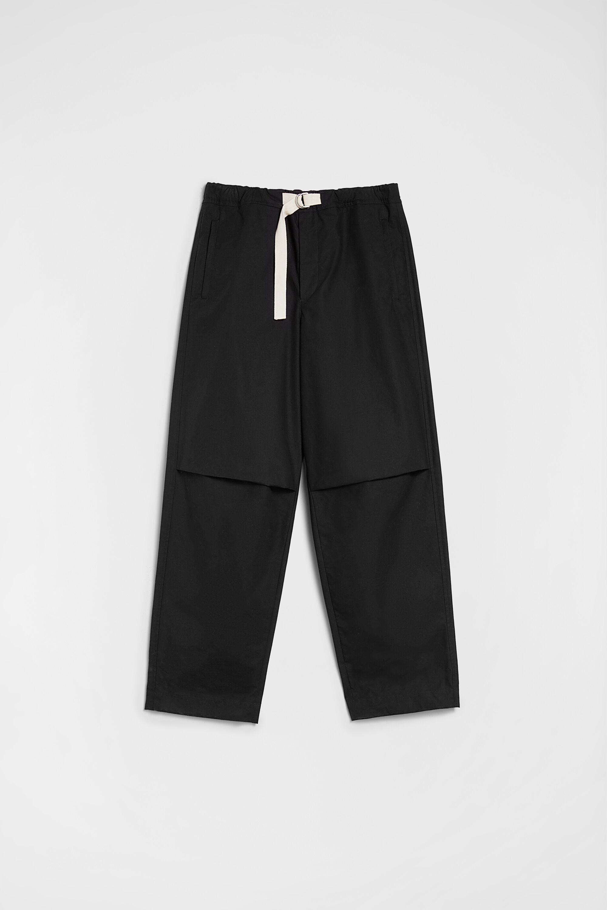 Organic cotton trousers with knee pleats and embroidered Jil Sander+ monogram Details - relaxed fit - dropped crotch and regular waist - elasticated waistband - integrated cotton belt with d-ring buckle - two front and back welt pockets with zip closure - Jil Sander+ logo embroidered on back - drawstring hem - water-repellent organic cotton - 100% cotton - made in Italy - StyleID: J47KA0268J45296001 Care - hand wash - iron with care Fit - model is 187cm/6'1" and is wearing a size 46 IT - Please note that the physical label of the item will show the Italian size