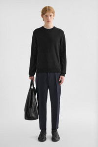 Long-sleeved merino wool sweater Details - relaxed fit and boxy shape - crew neck - two-toned stripe - ribbed neck, hem and cuffs - primary fabric 100% virgin wool - made in Italy - StyleID: J22GP0111J14610001 Care - dry clean only - iron with care Fit - model is 187cm/6'1" and is wearing a size 48 IT - Please note that the physical label of the item will show the Italian size