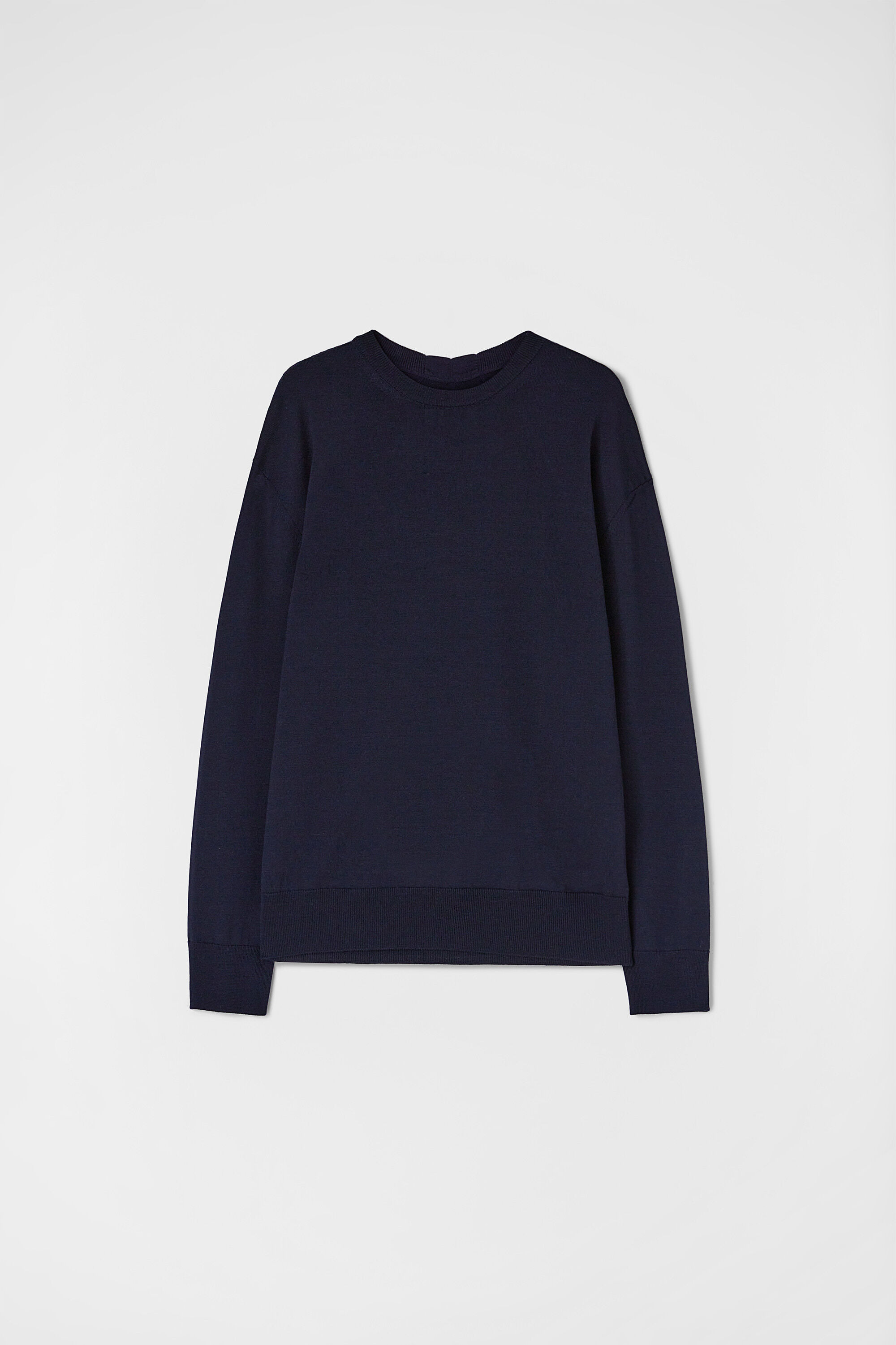 Oversized midweight long-sleeved merino wool sweater Details - oversized fit - we recommend taking one size down - dropped shoulders - crew neck and long sleeves - fully fashioning detail on the back - ribbed neck, hem and cuffs - midweight merino wool - 100% wool - made in Italy - StyleID: J23GP0003J14532402 Care - dry clean only - iron with care Fit - model is 187cm/6'1" and is wearing a size 48 IT - Please note that the physical label of the item will show the Italian size