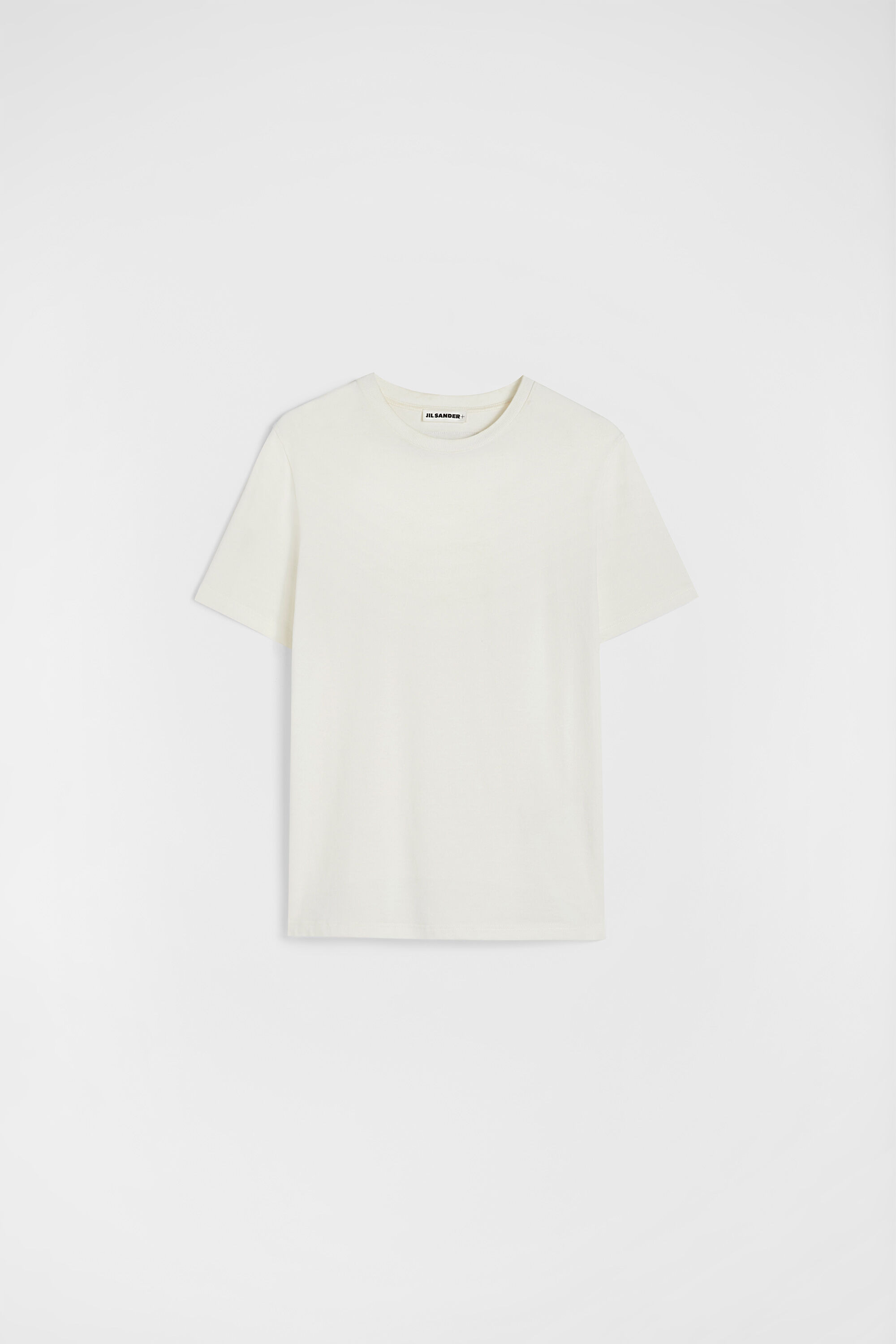 Short-sleeved lightweight cotton jersey t-shirt with back leather patch with embossed Jil Sander+ logo Details - oversized fit - dropped shoulders - Jil Sander+ logo embossed on back leather patch - lightweight compact cotton jersey - 100% cotton - made in Italy - StyleID: J40GC0142J20103102 Care - hand wash - iron with care Fit - model is 177cm/5'9" and is wearing a size S - Please note that the physical label of the item will show the international size