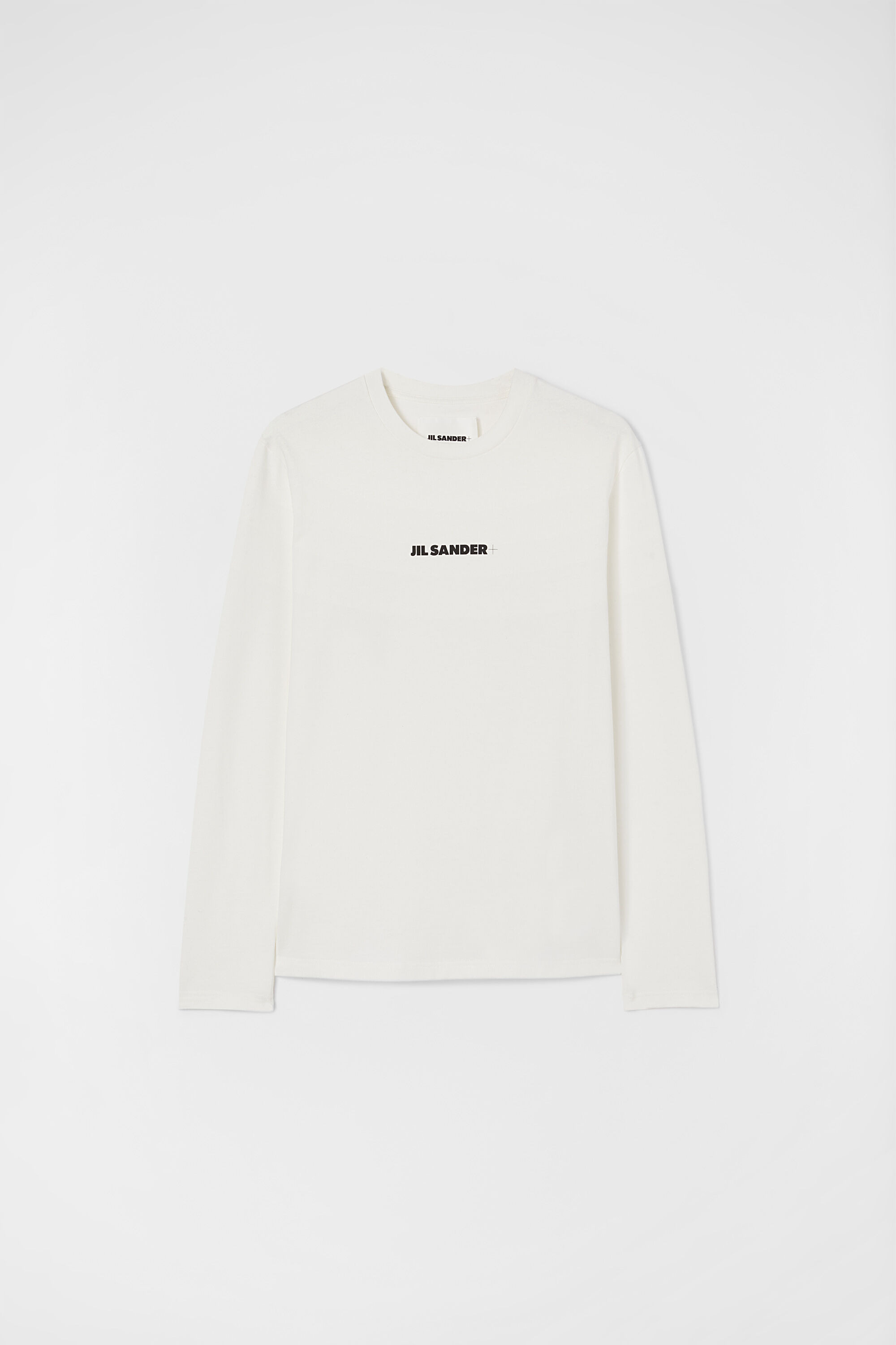 Long-sleeved t-shirt with Jil Sander+ logo printed Details - relaxed fit - crew-neck and long sleeves - printed Jil Sander+ logo on chest - lightweight cotton jersey - 100% cotton - made in Italy - StyleID: J40GC0117J20103102 Care - hand wash - iron with care Fit - model is 177cm/5'9" and is wearing a size S - Please note that the physical label of the item will show the international size