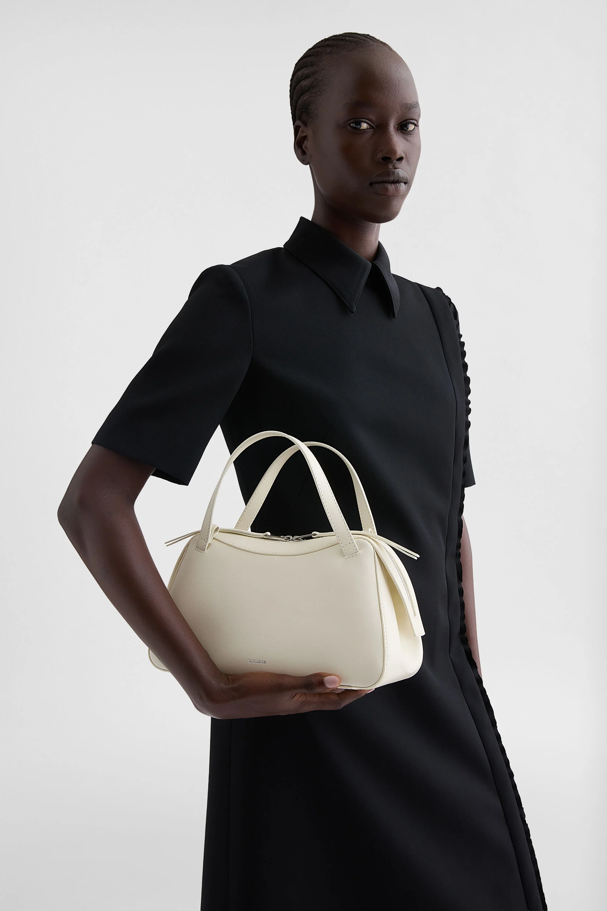 Small-sized leather shoulder bag with embossed Jil Sander logo Details - detachable crossbody strap - two leather top handles - zip closure with double leather zip puller - two main compartments - inner flat leather pocket with blind embossed Jil Sander logo - nappa lining - embossed Jil Sander logo - 100% calf leather - made in Italy - StyleID: J07WG0109P6570106