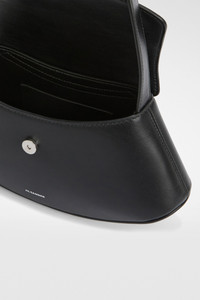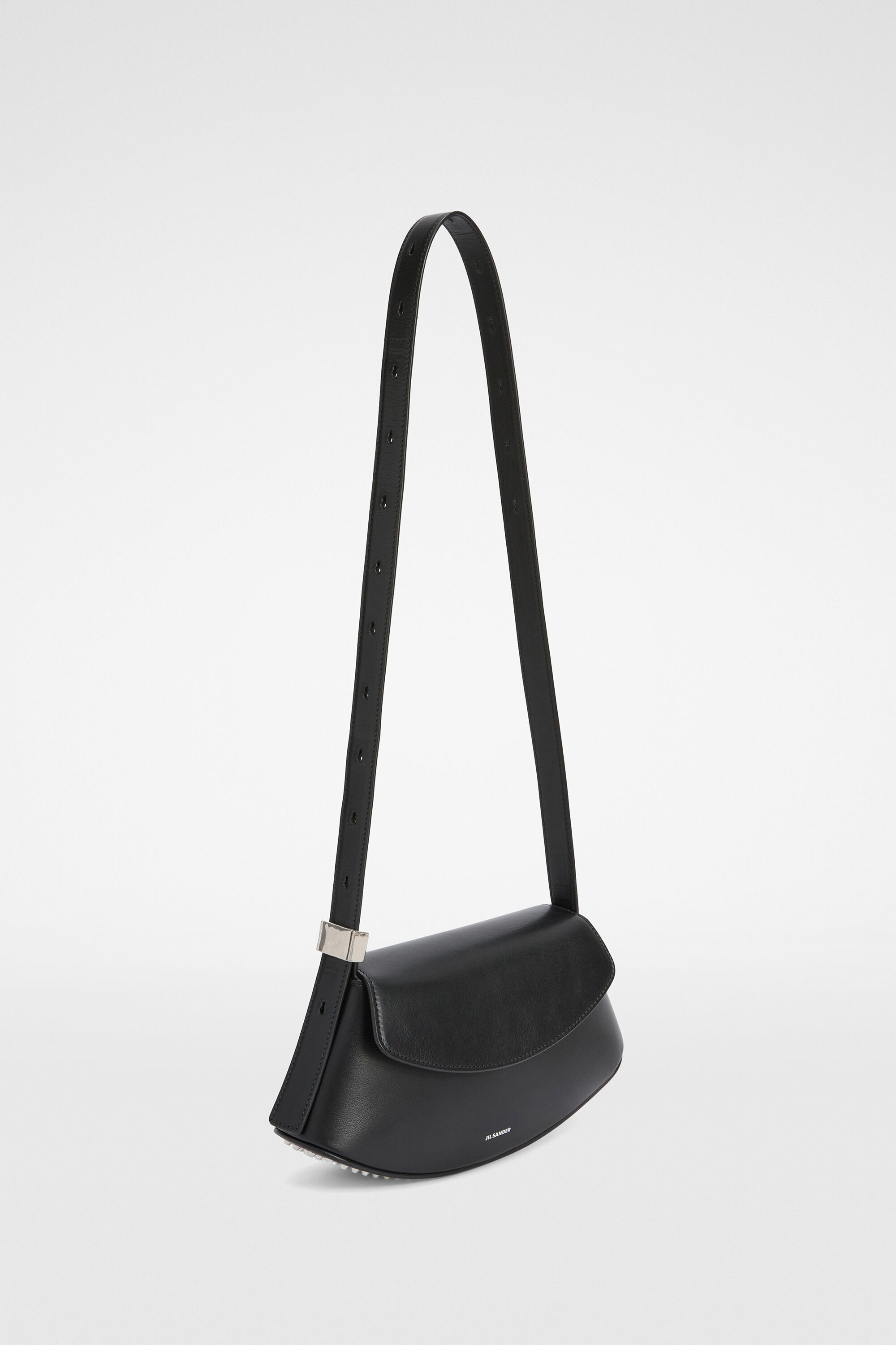 Small-sized leather crossbody bag with metal jewel buckle, curved base with metal studs and embossed Jil Sander logo Details - adjustable leather shoulder strap with metal jewel buckle - inner flat leather pocket with blind embossed Jil Sander logo - magnetic button closure flap - curved base with metal studs - nappa lining - embossed Jil Sander logo - 100% calf leather - made in Italy - StyleID: J08WG0056P7191001